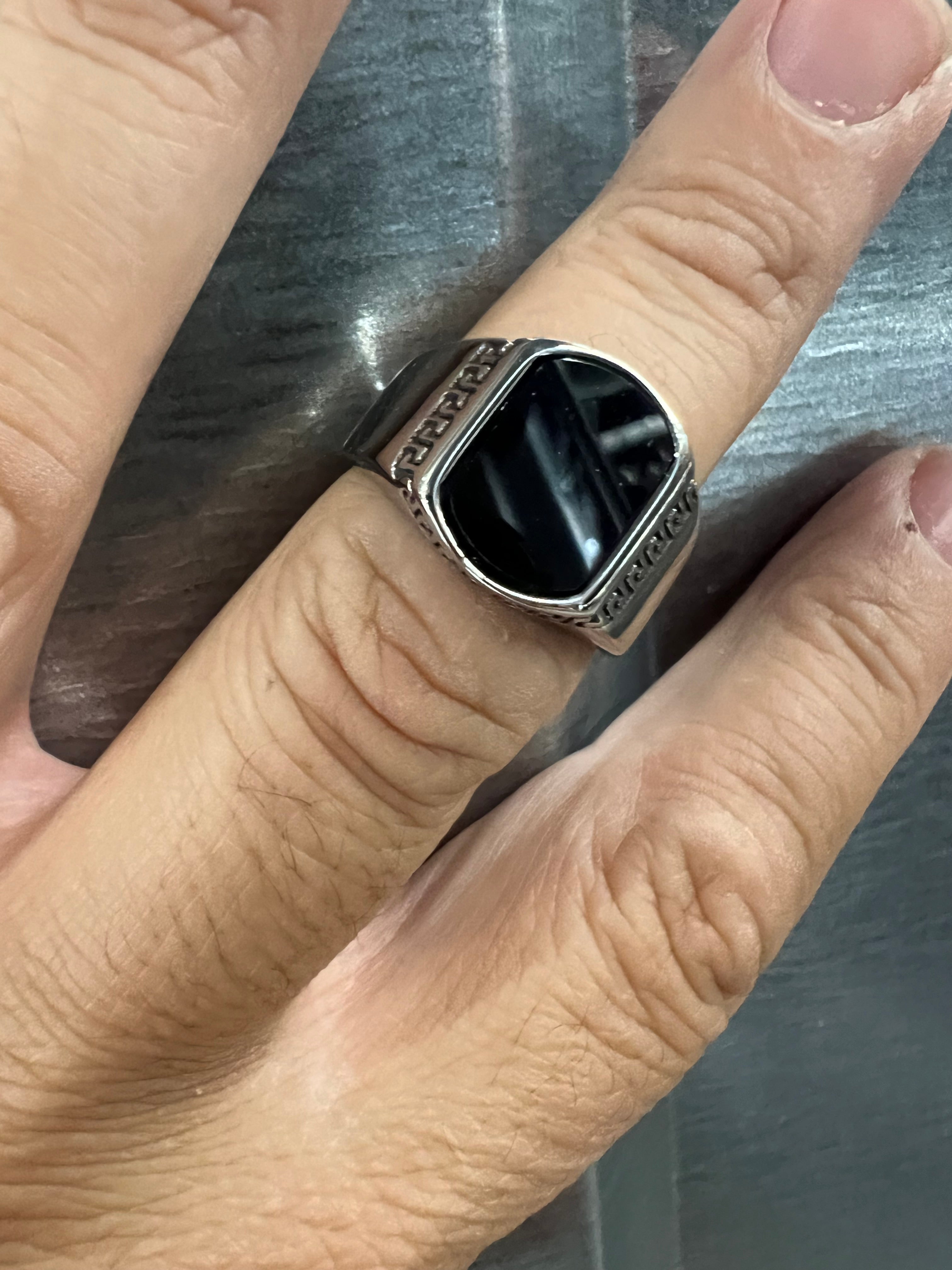 Anello in acciaio con pietra nera misura 20