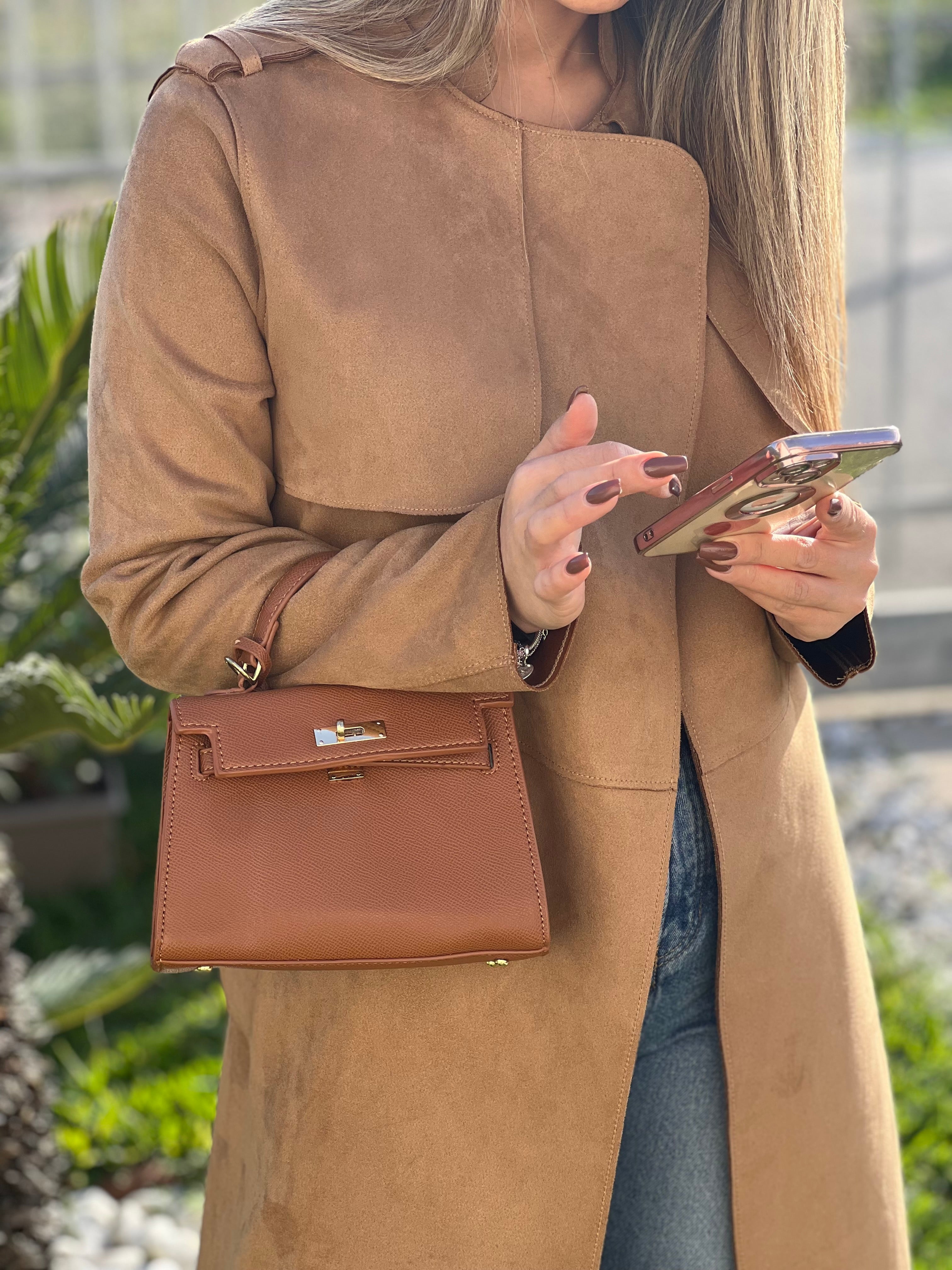 Bag : colore cammello , con tracolla in regalo , misura larghezza 20 cm , altezza 14 cm , profondita’ 7 cm piccola taglia )
