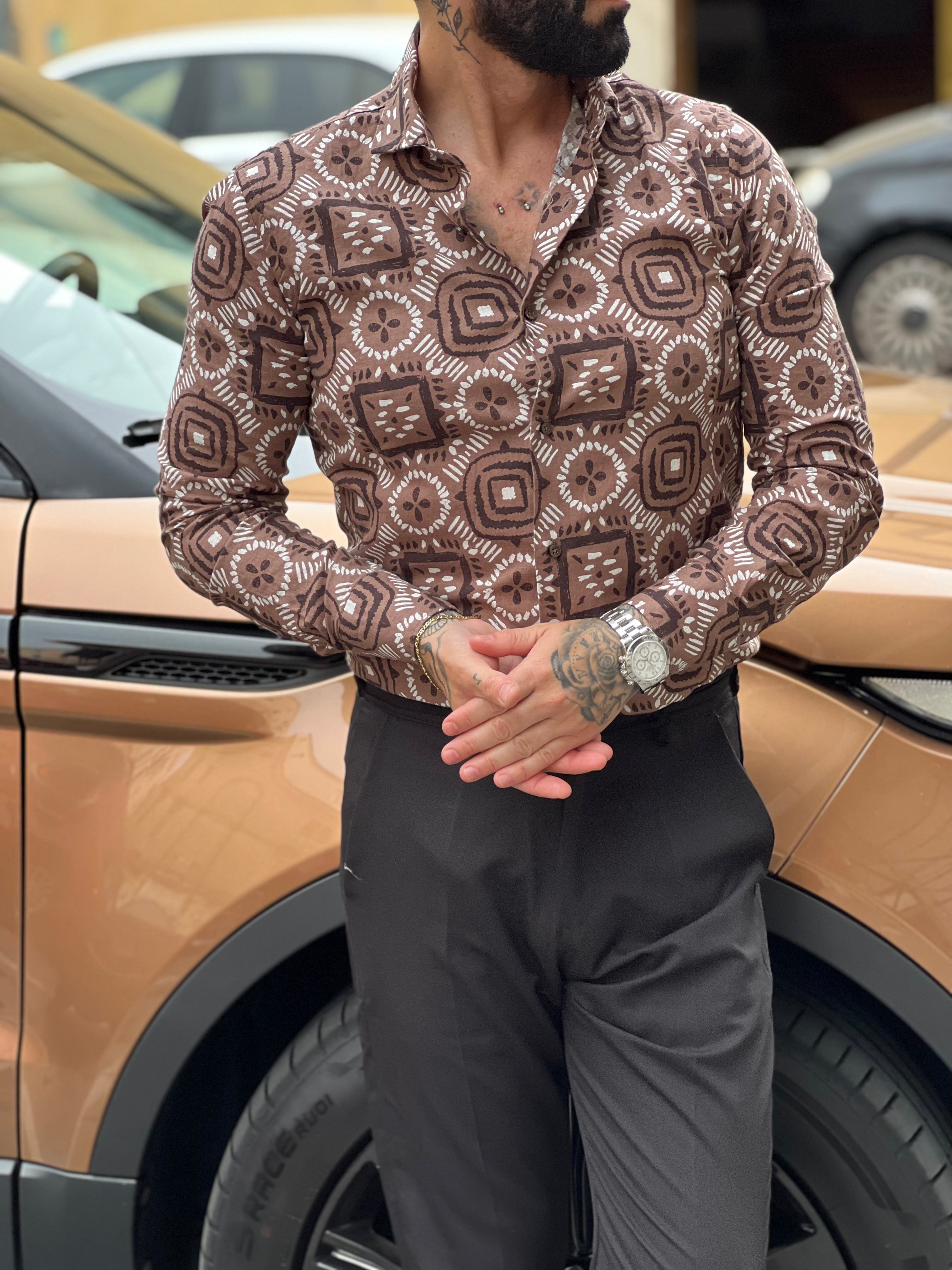 Modello : e alto 1,78 e pesa 75 kg , indossa una taglia s , tessuto Lino fantasia , vestibilta ‘ normale , Camicia prodotta in sartoria