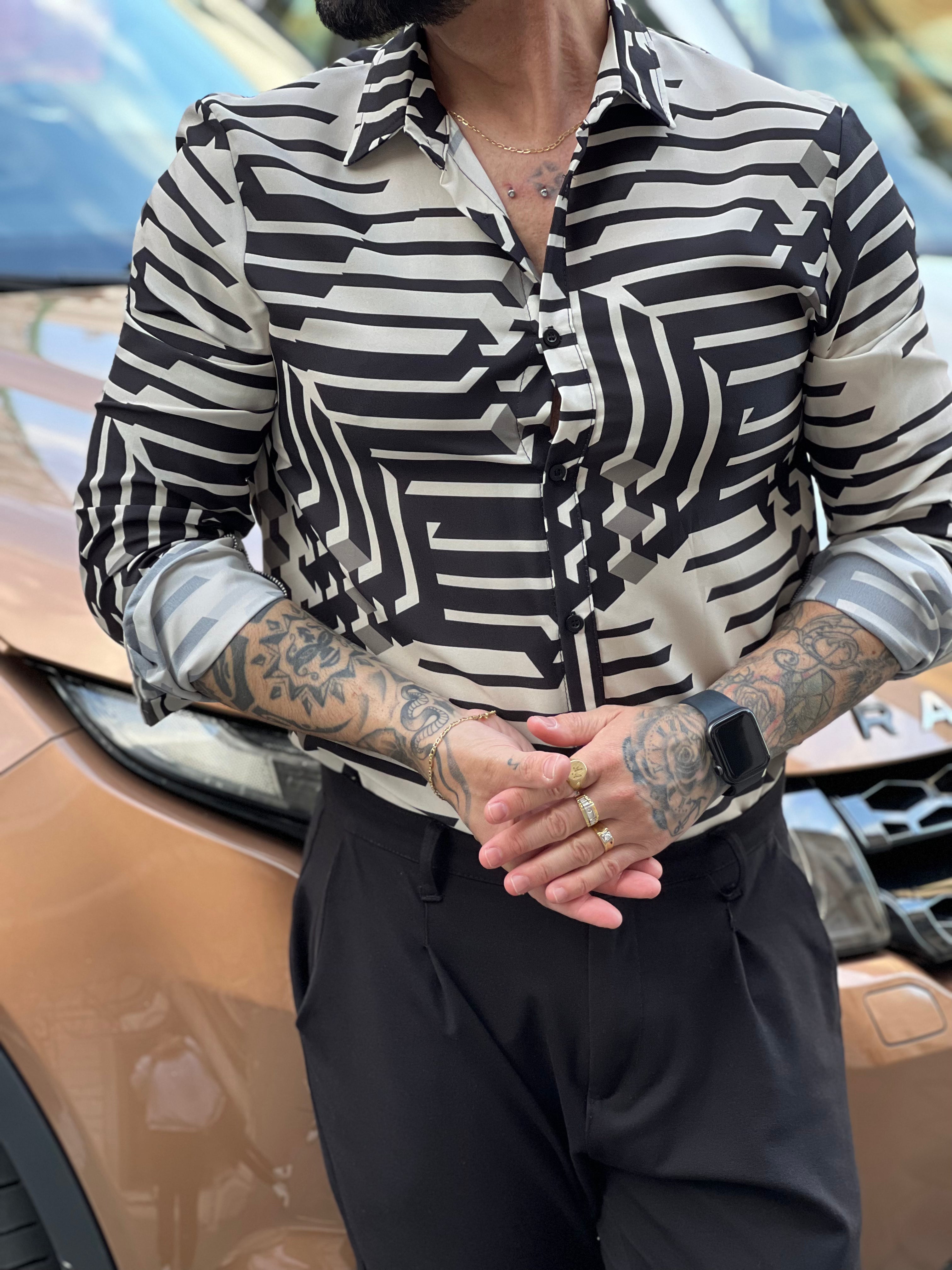 Camicia in tessuto viscosa , Vestibilita ‘ regolare , il modello indossa una taglia m , e alto 1,74 pesa 74 kg ,