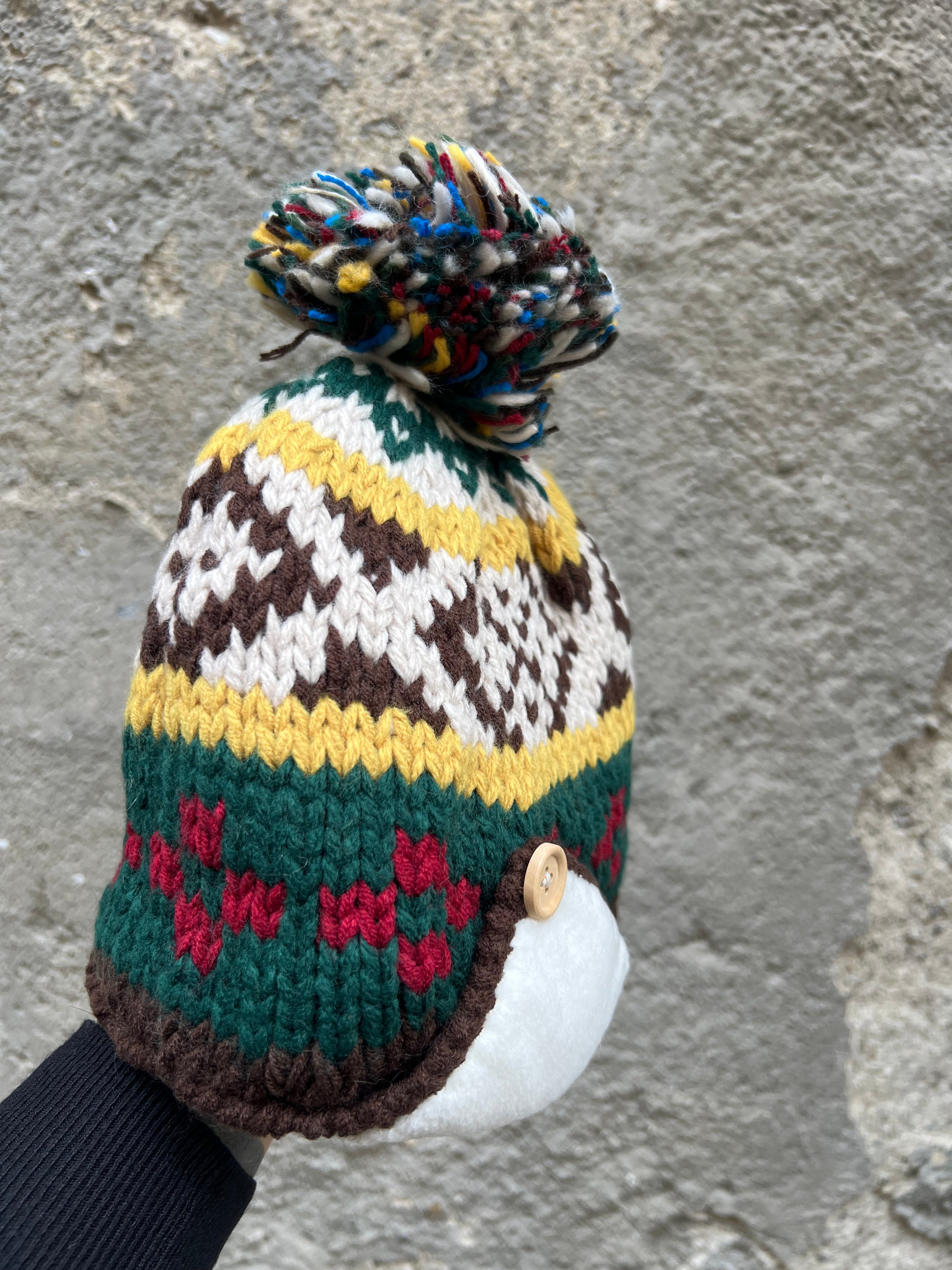 Cappello in lana , con bottoni regolabili che scendono alle orecchie , caldo top