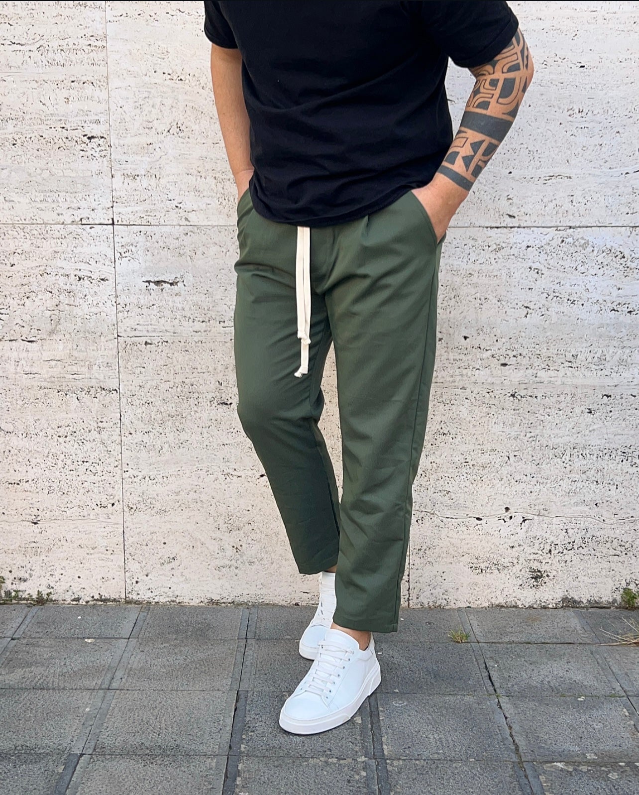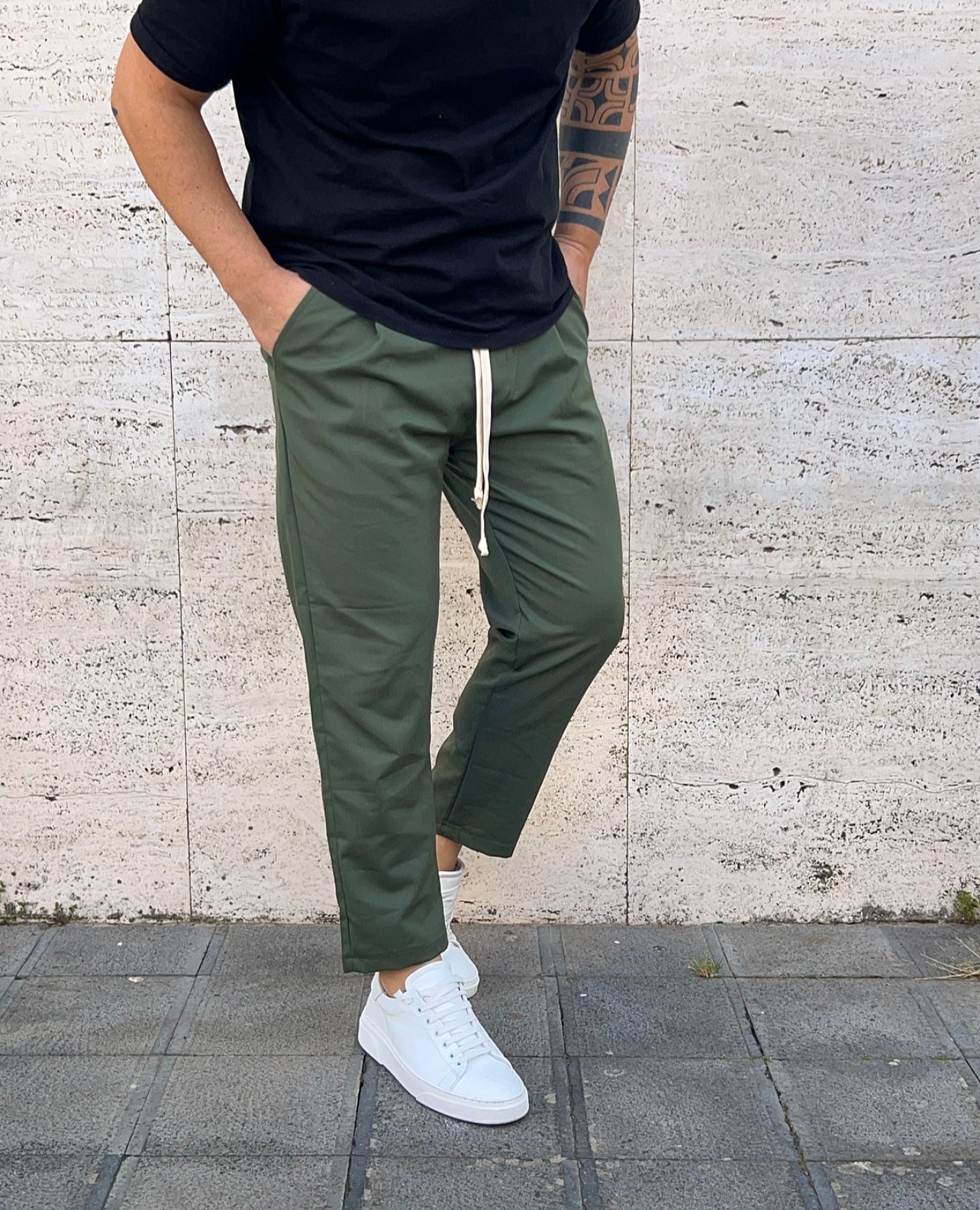 Cargo , con molla in vita con laccio regolabile , un po’ corto alla caviglia , Vestibilita’ comoda , tessuto fresco