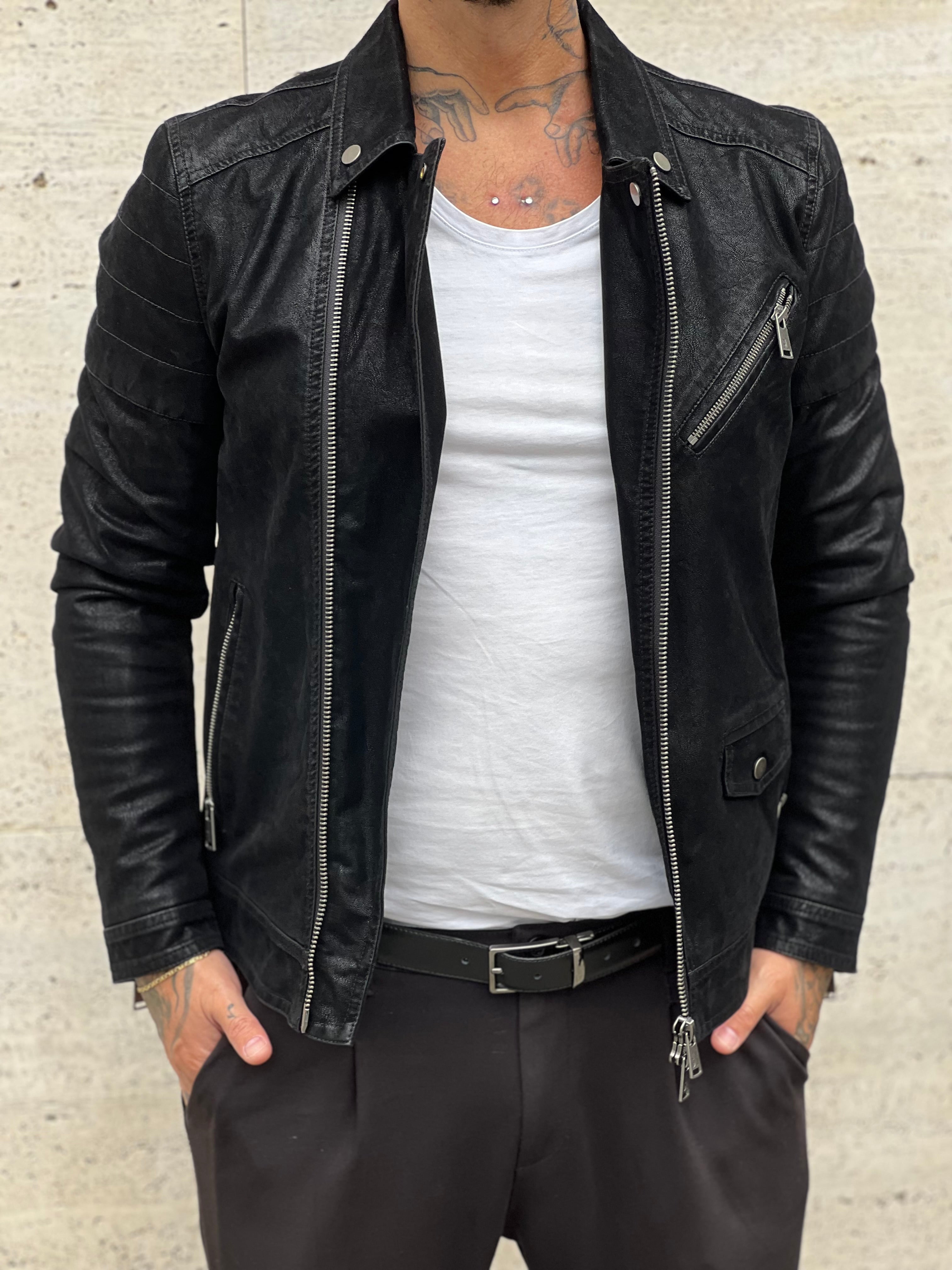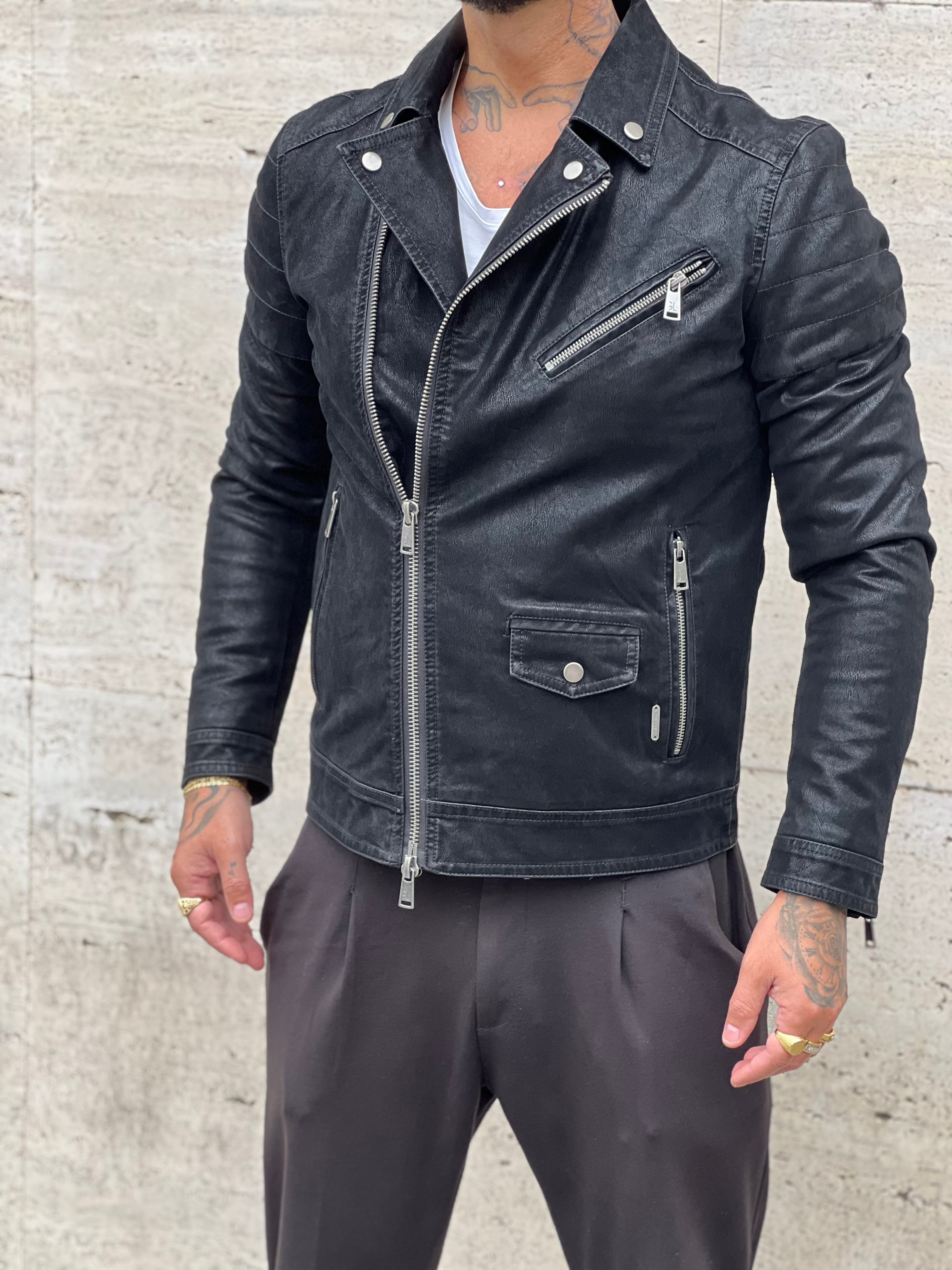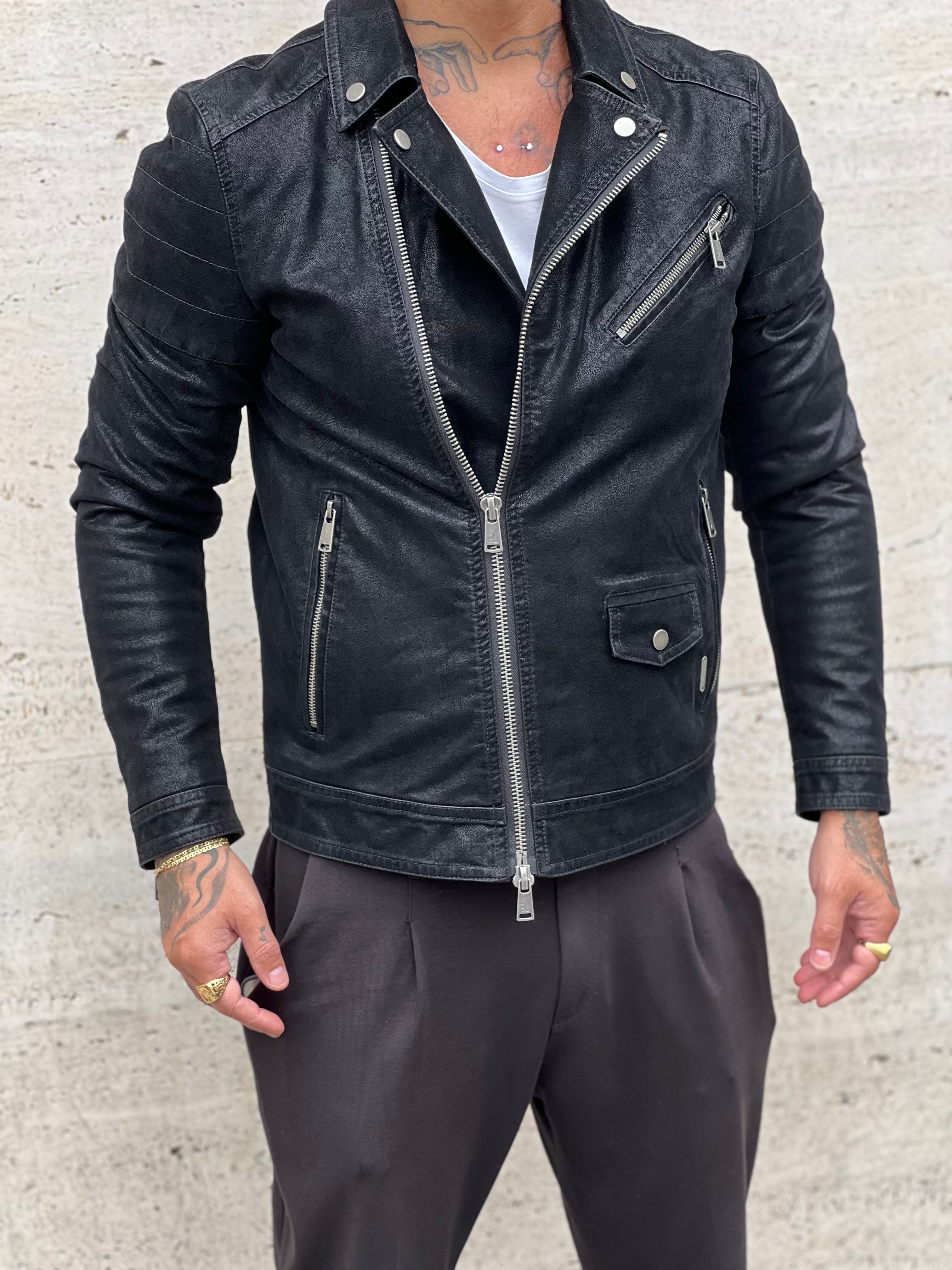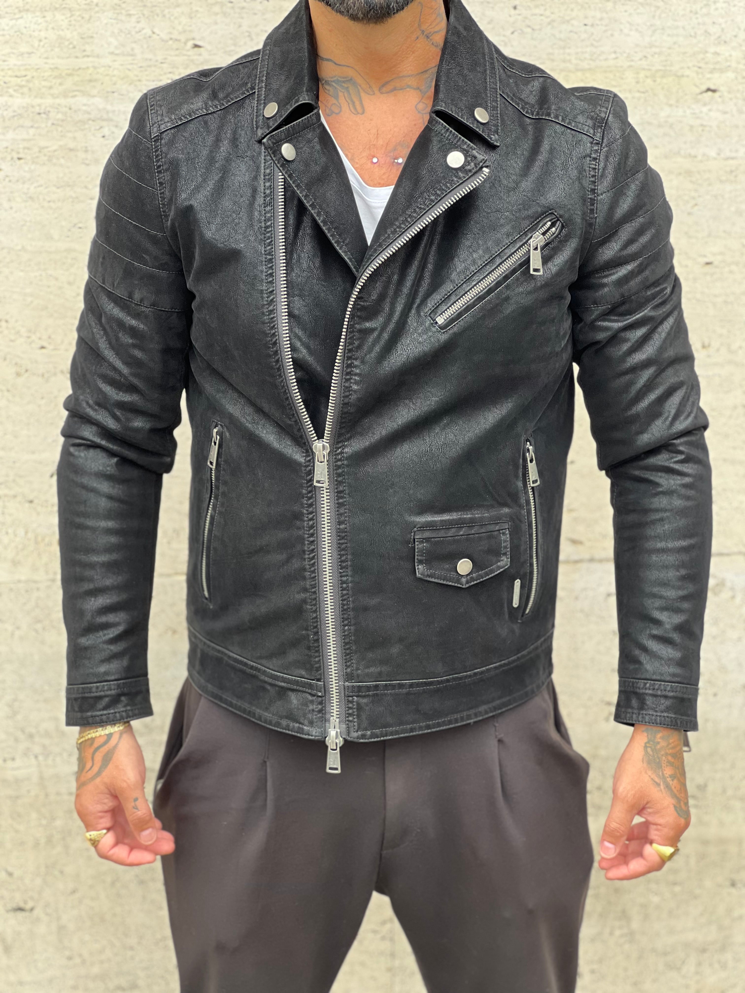Chiodo : tessuto pelle 50% cotone - 40% viscosa , cerniere , Vestibilita’ top