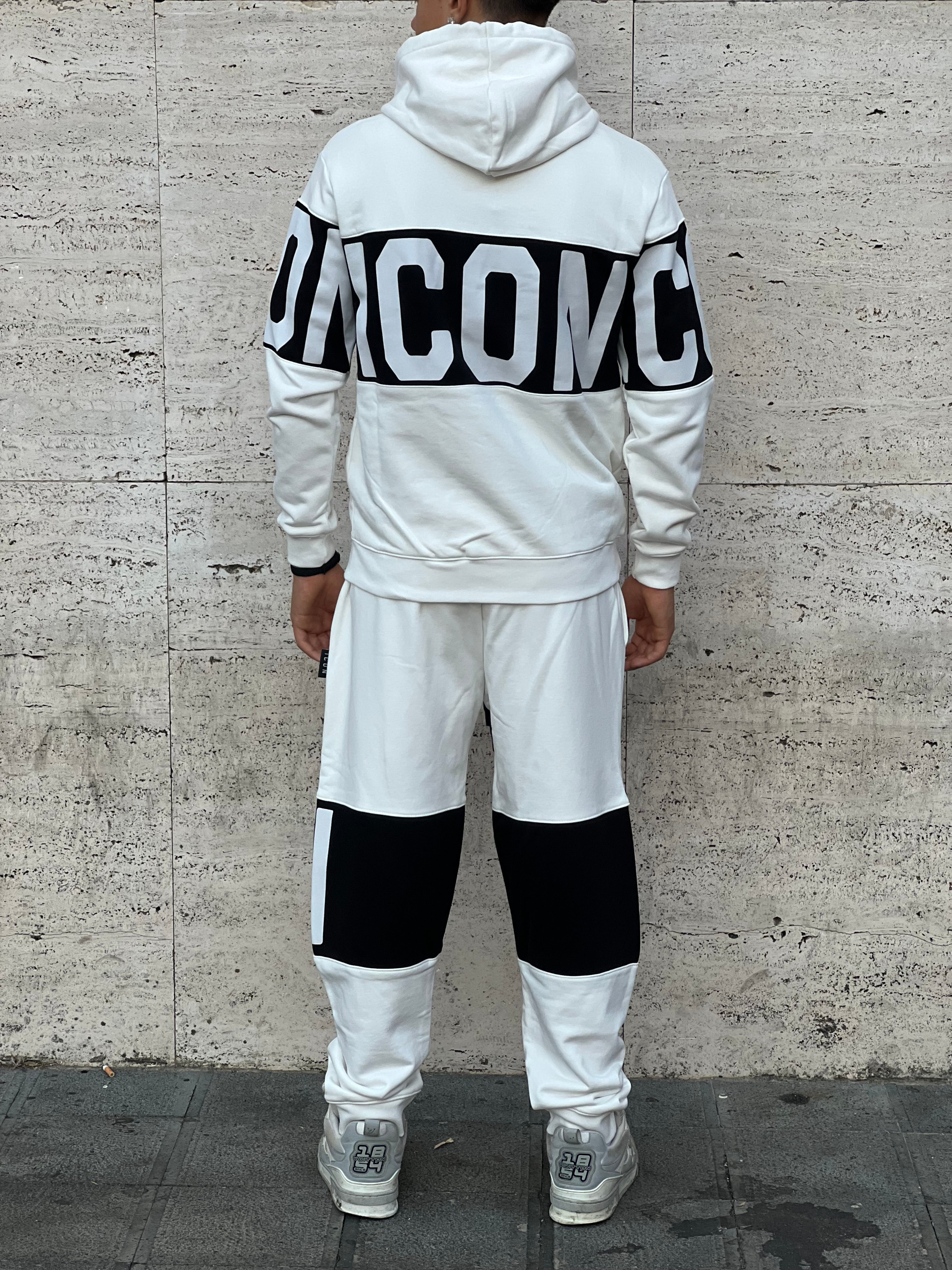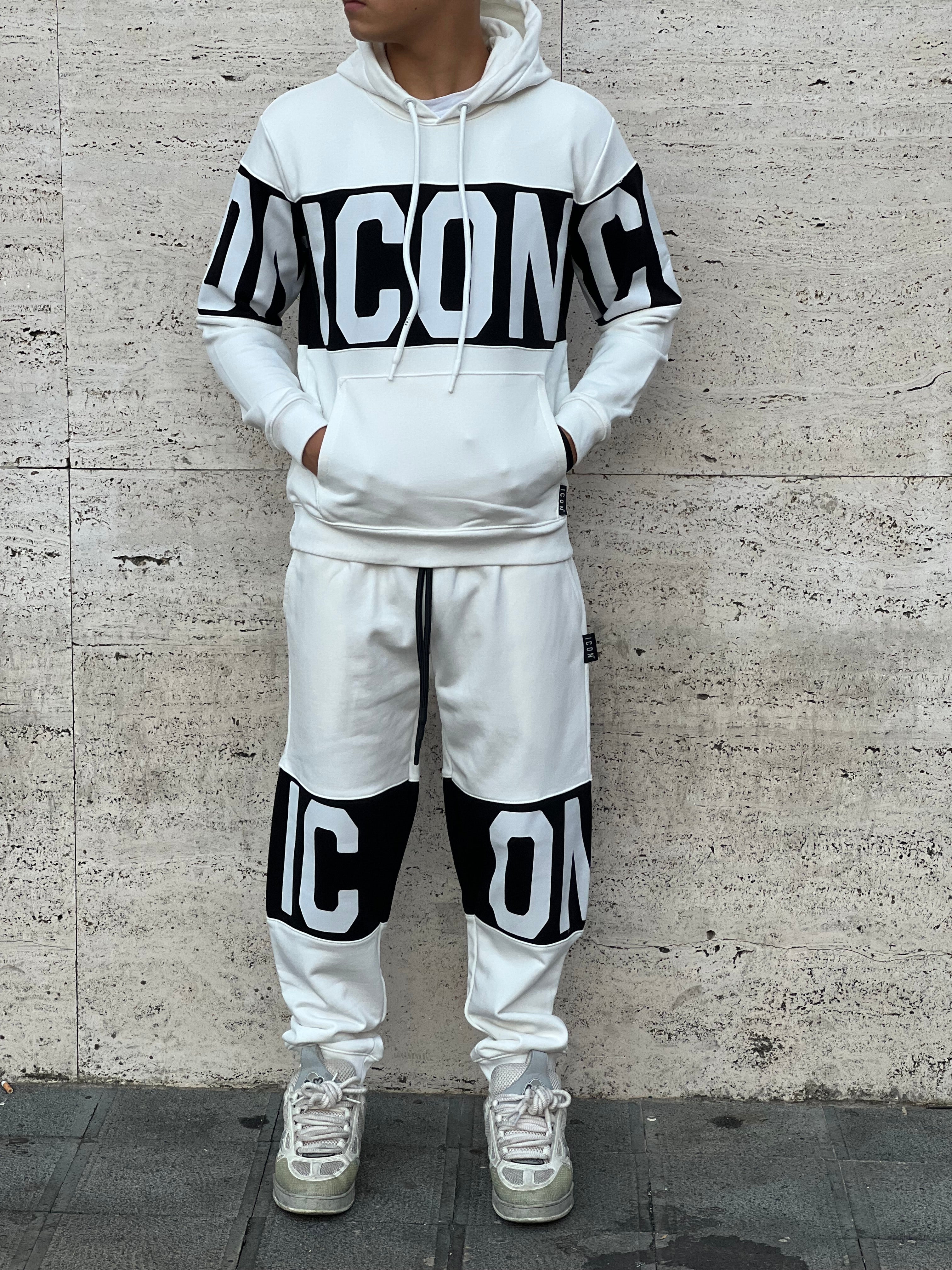 Completo icon colore bianco , stampa sul petto e schiena , capuccio , Vestibilita ‘ morbida