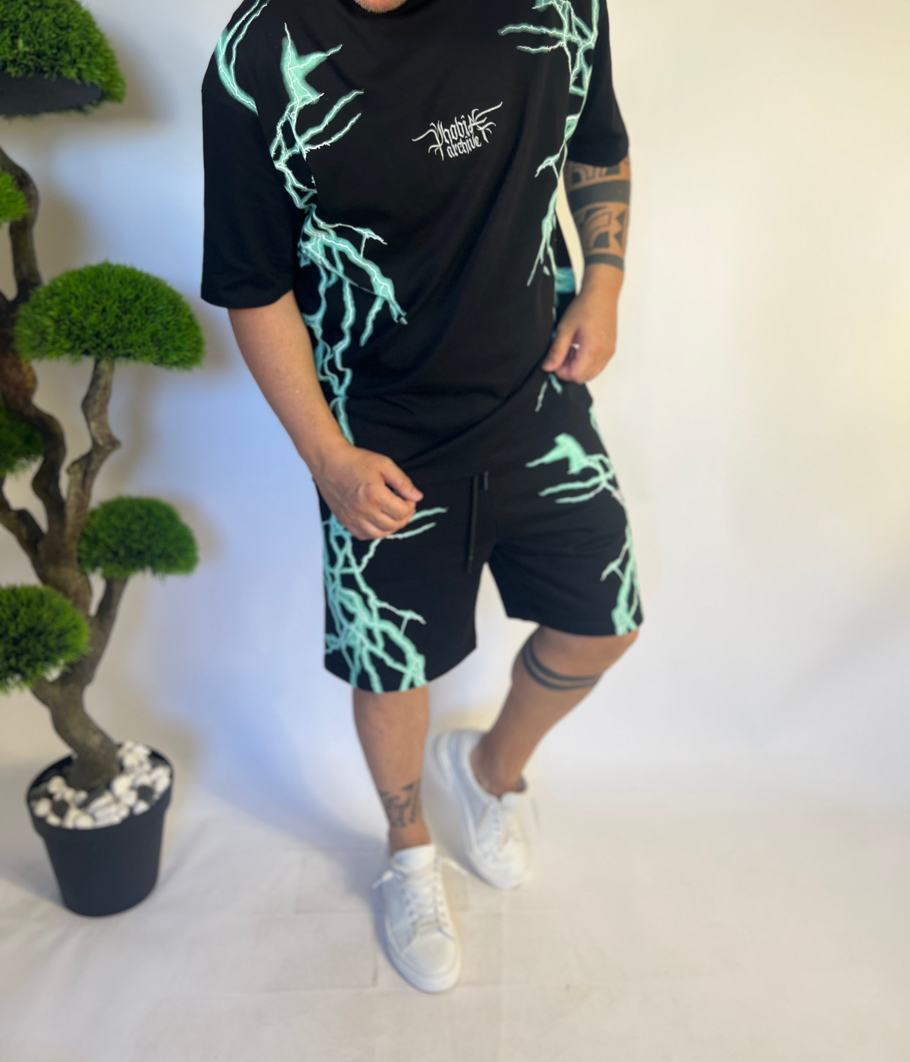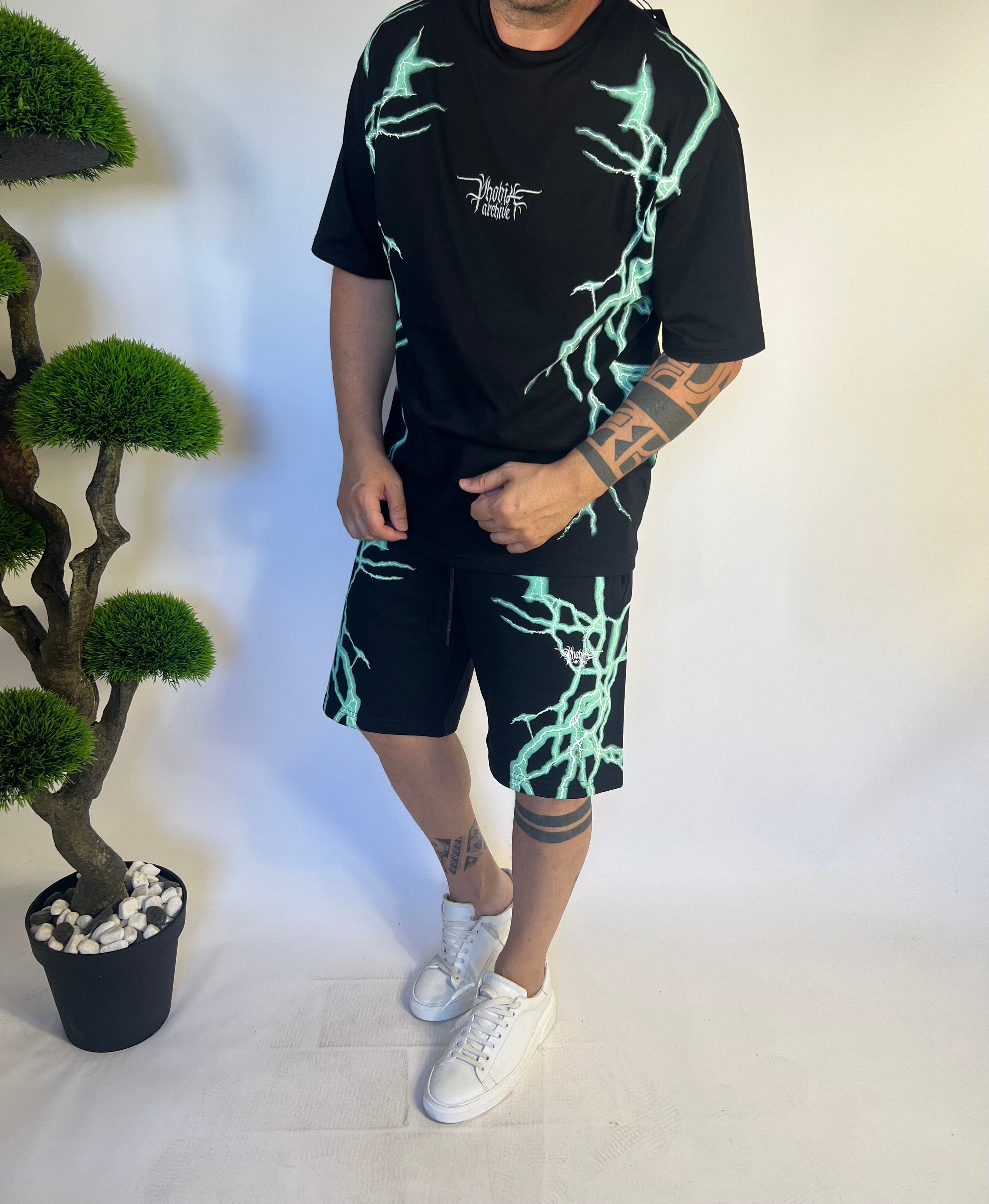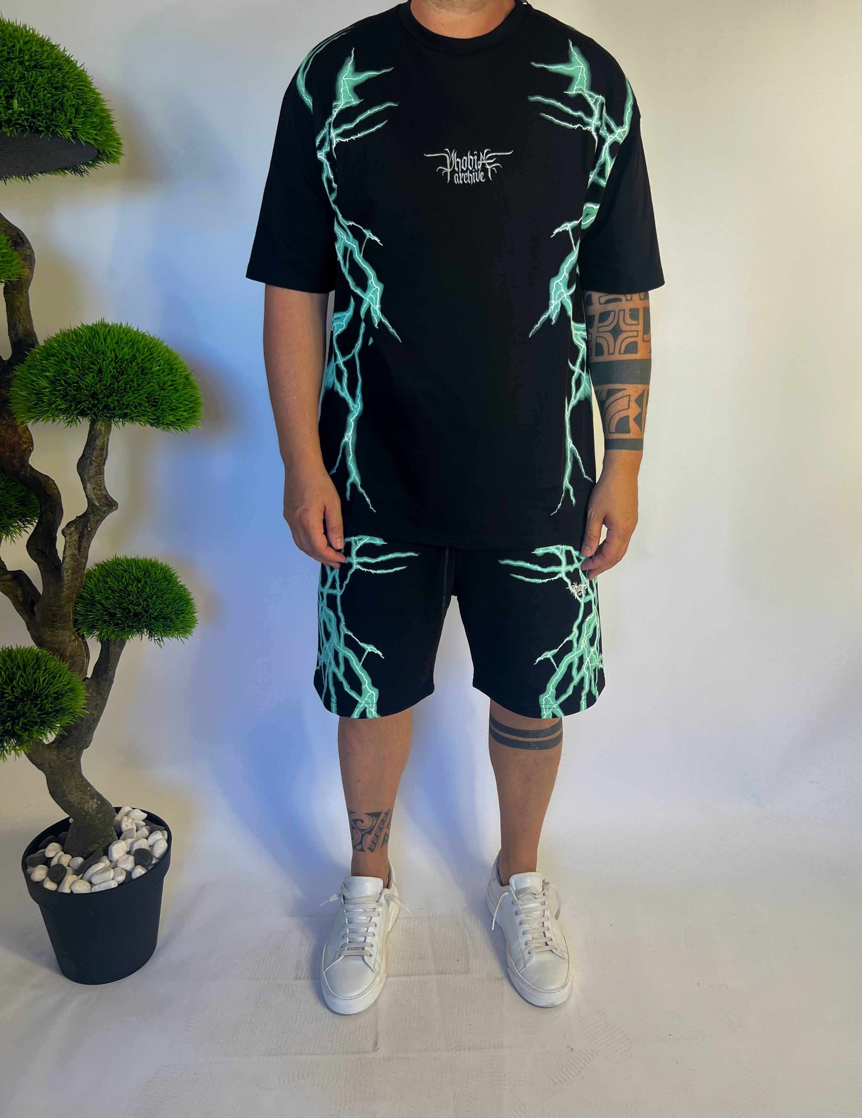 Completo nero , con fulmini colorati , Vestibilita’ normale , girocollo ,100% cotone ,