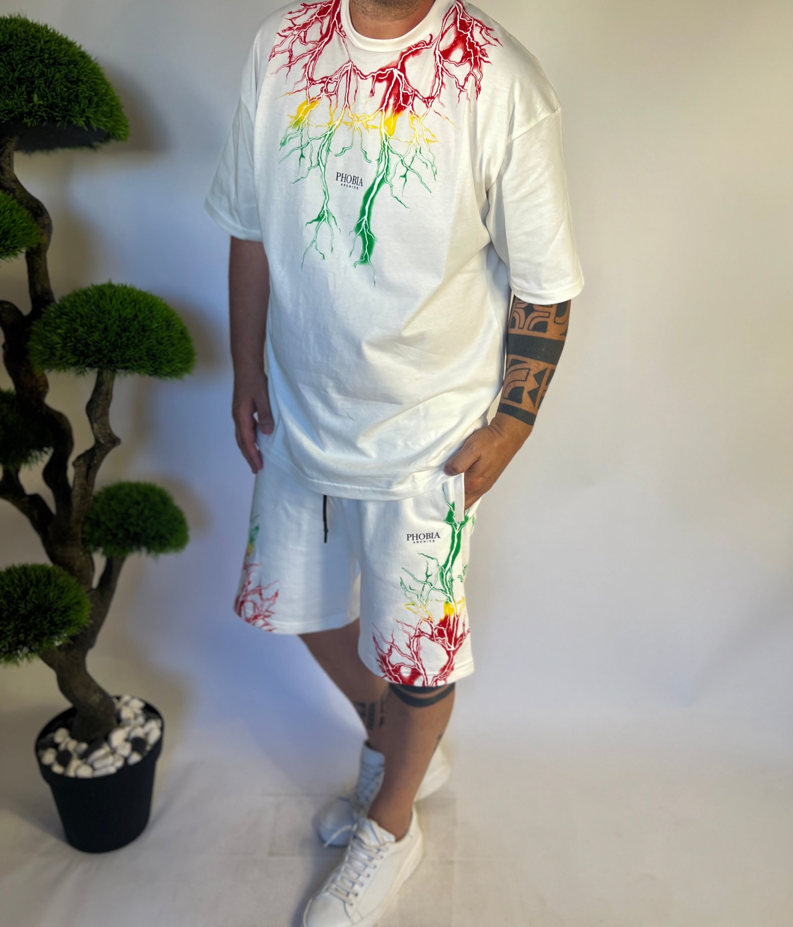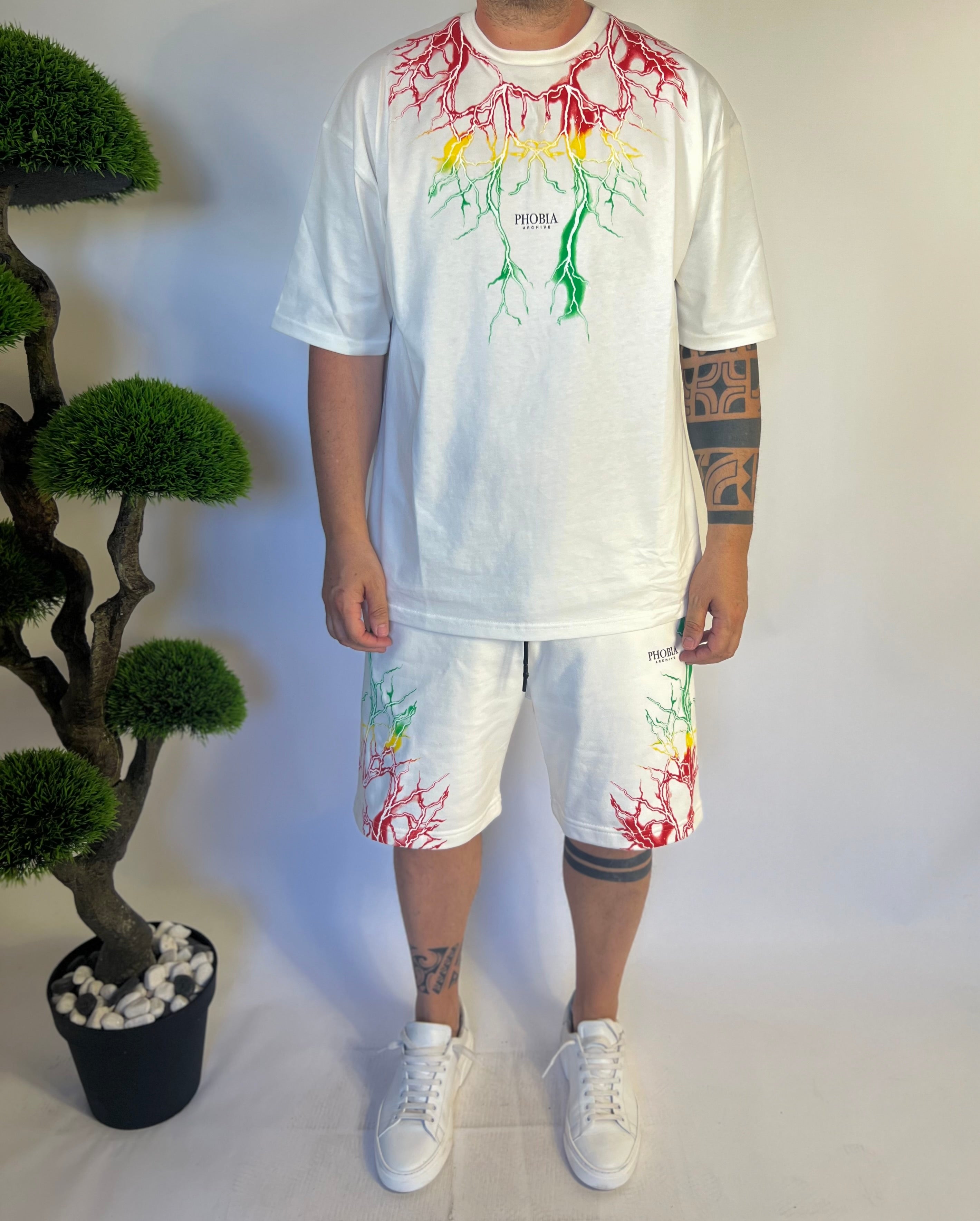 Completo bianco , con fulmini colorati , Vestibilita’ normale , girocollo ,100% cotone ,