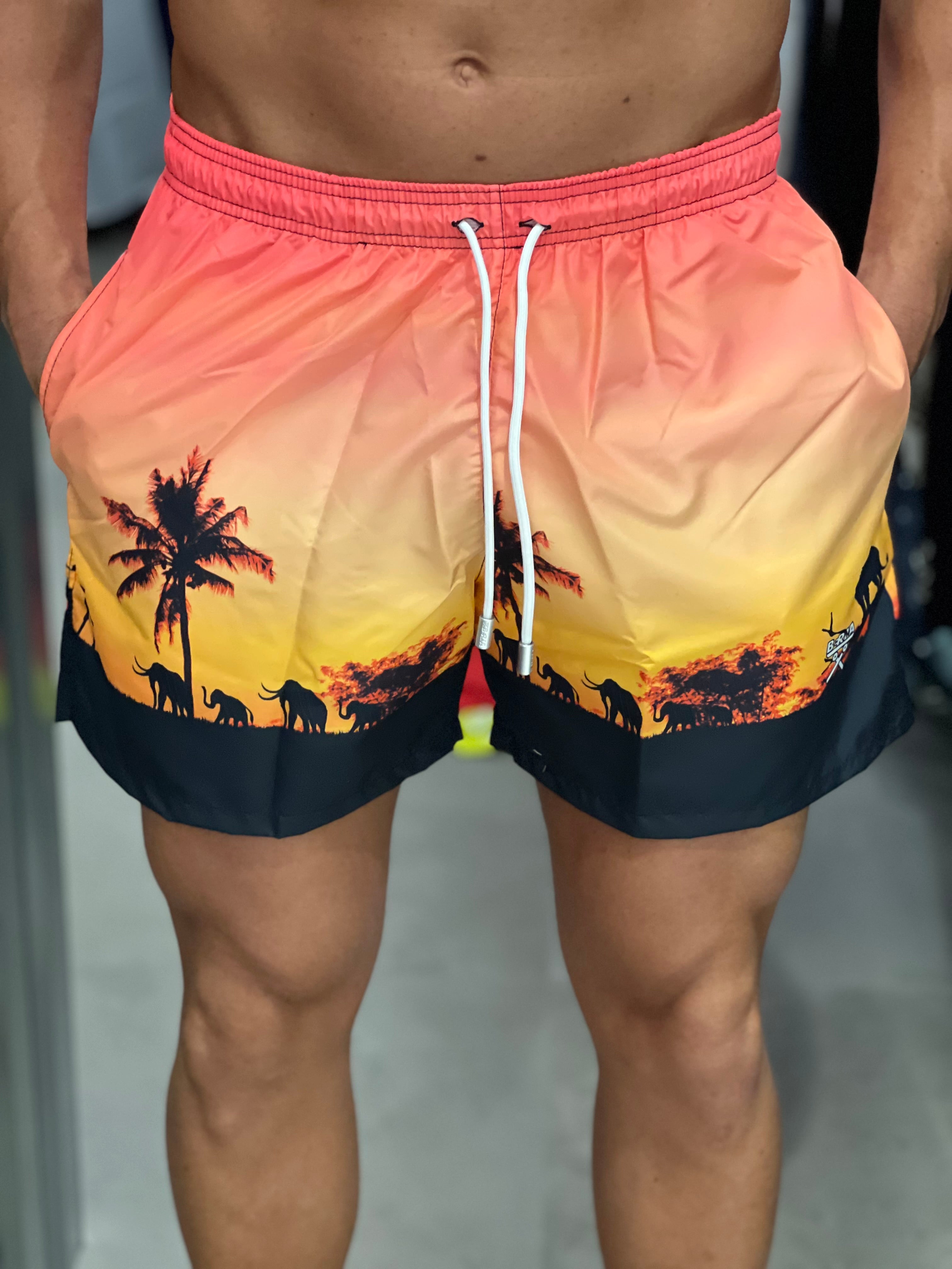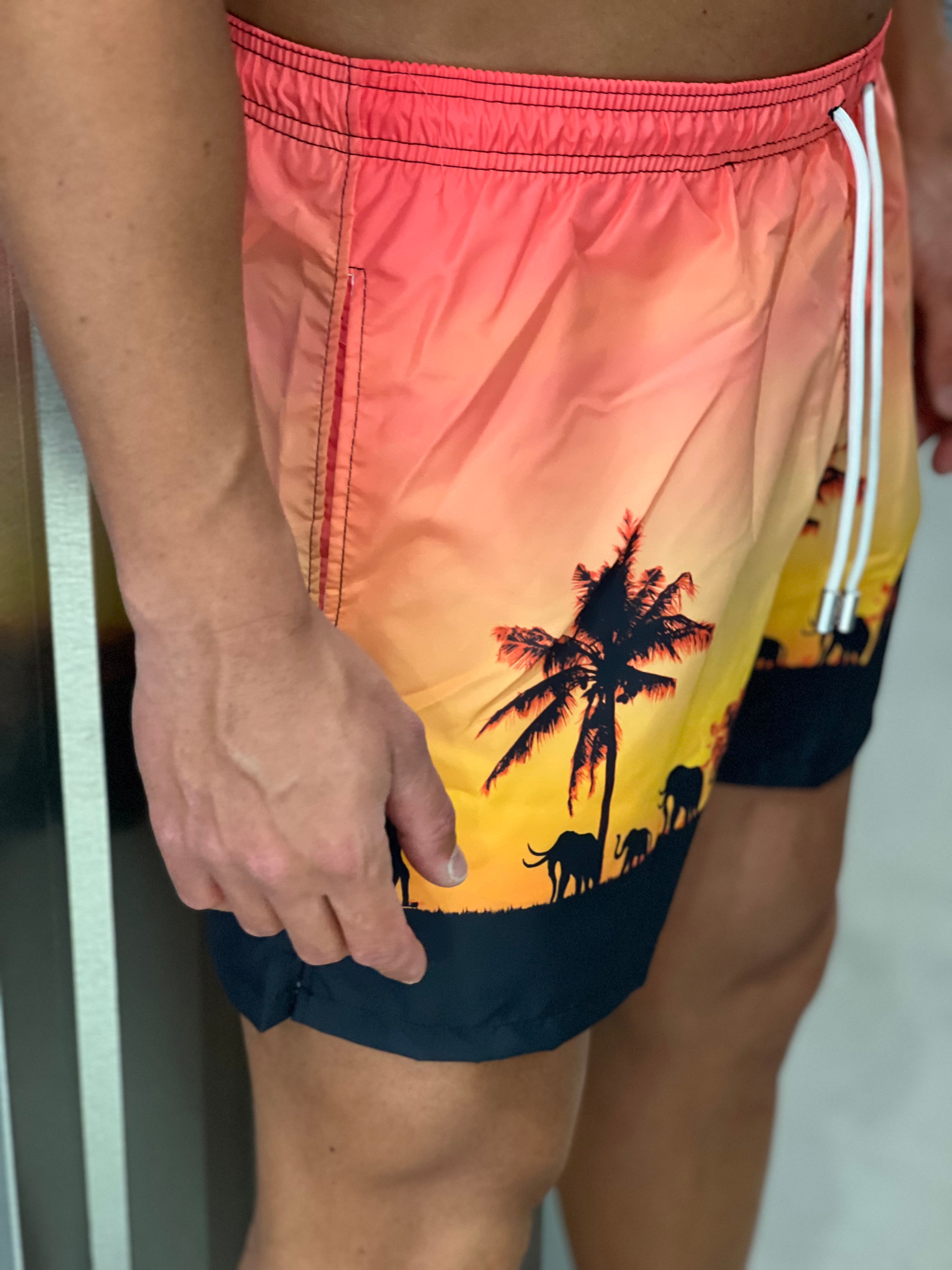 <head><meta charset="UTF-8" /></head>Modello : è alto 1,78 e pesa 79 kg indossa una taglia m , colore arancio giallo , con disegni palme