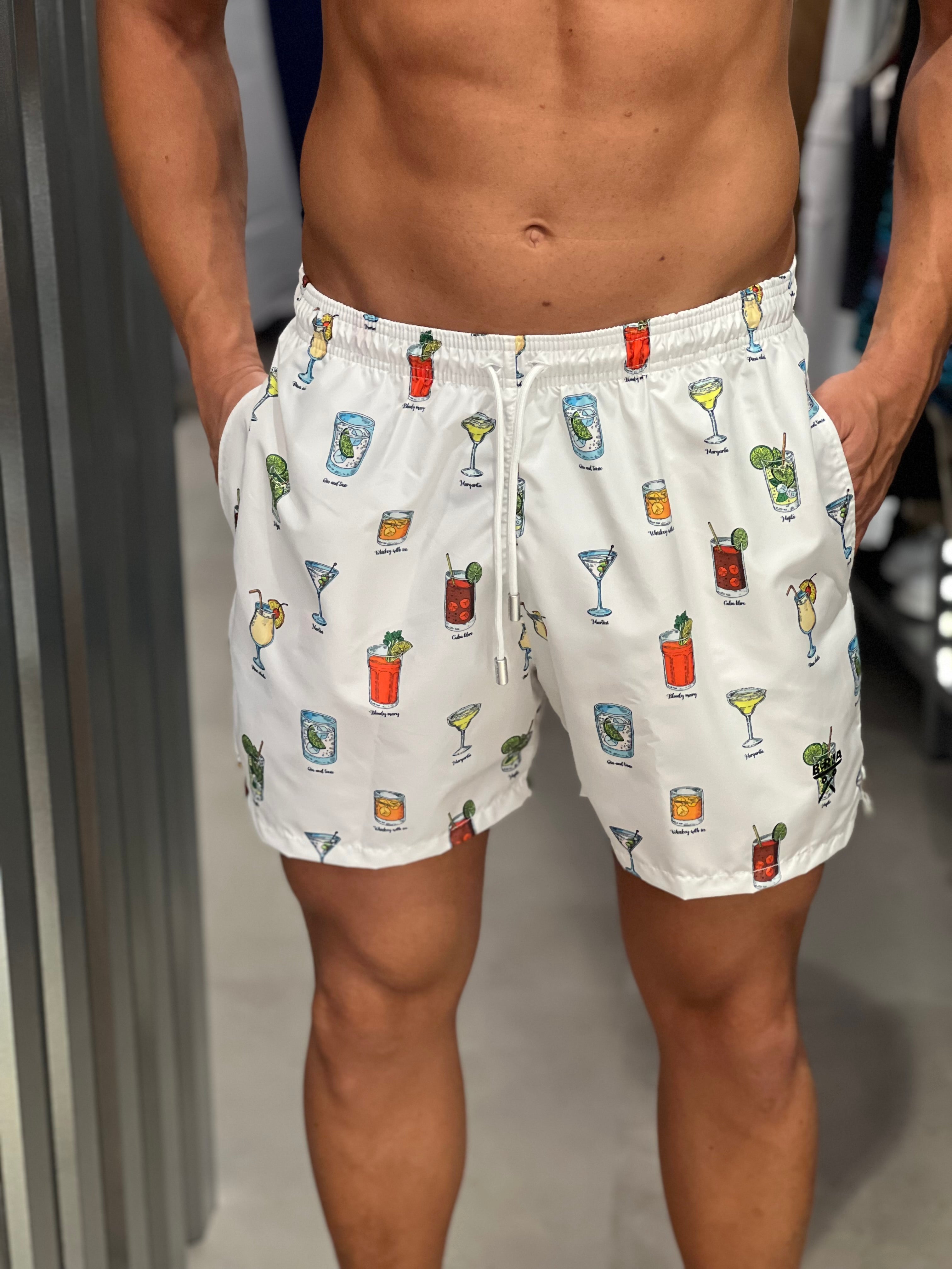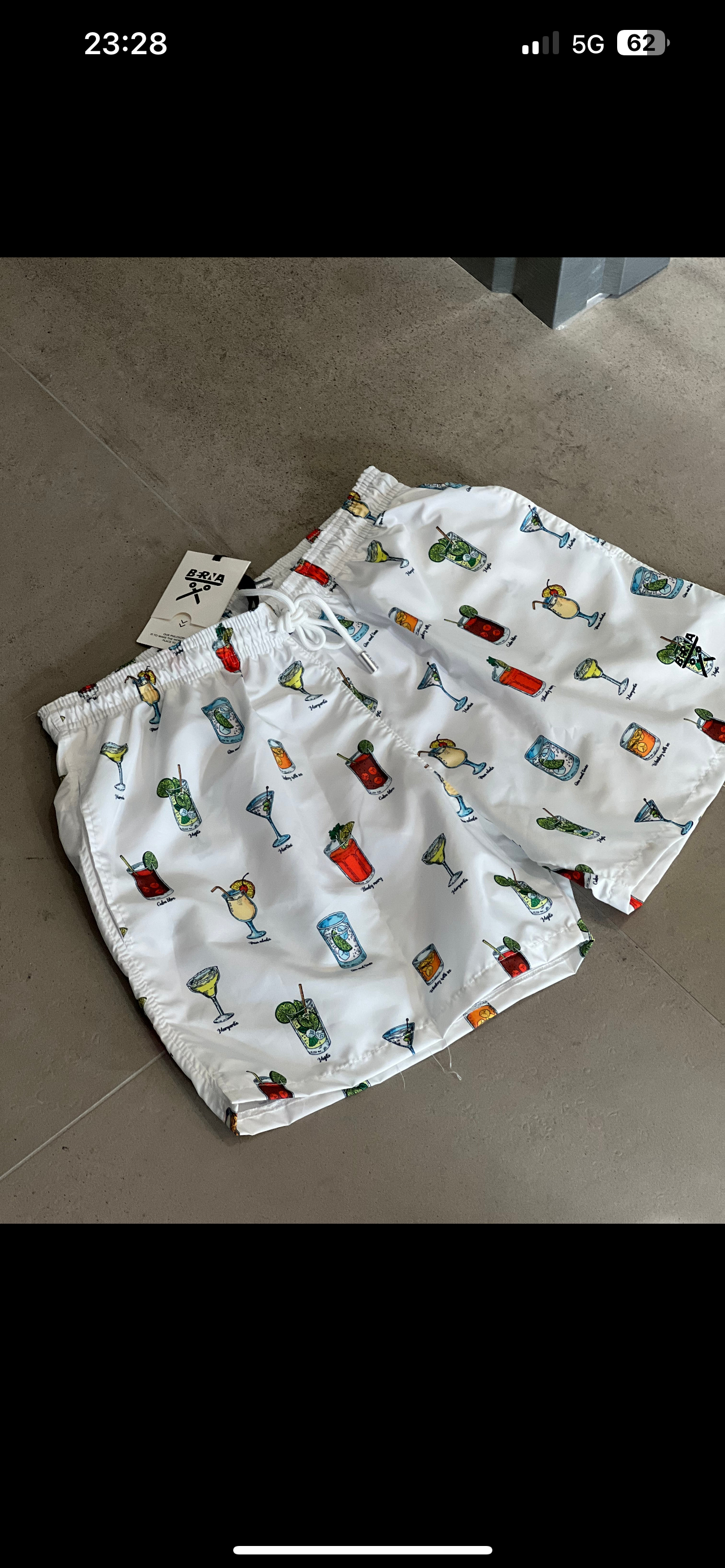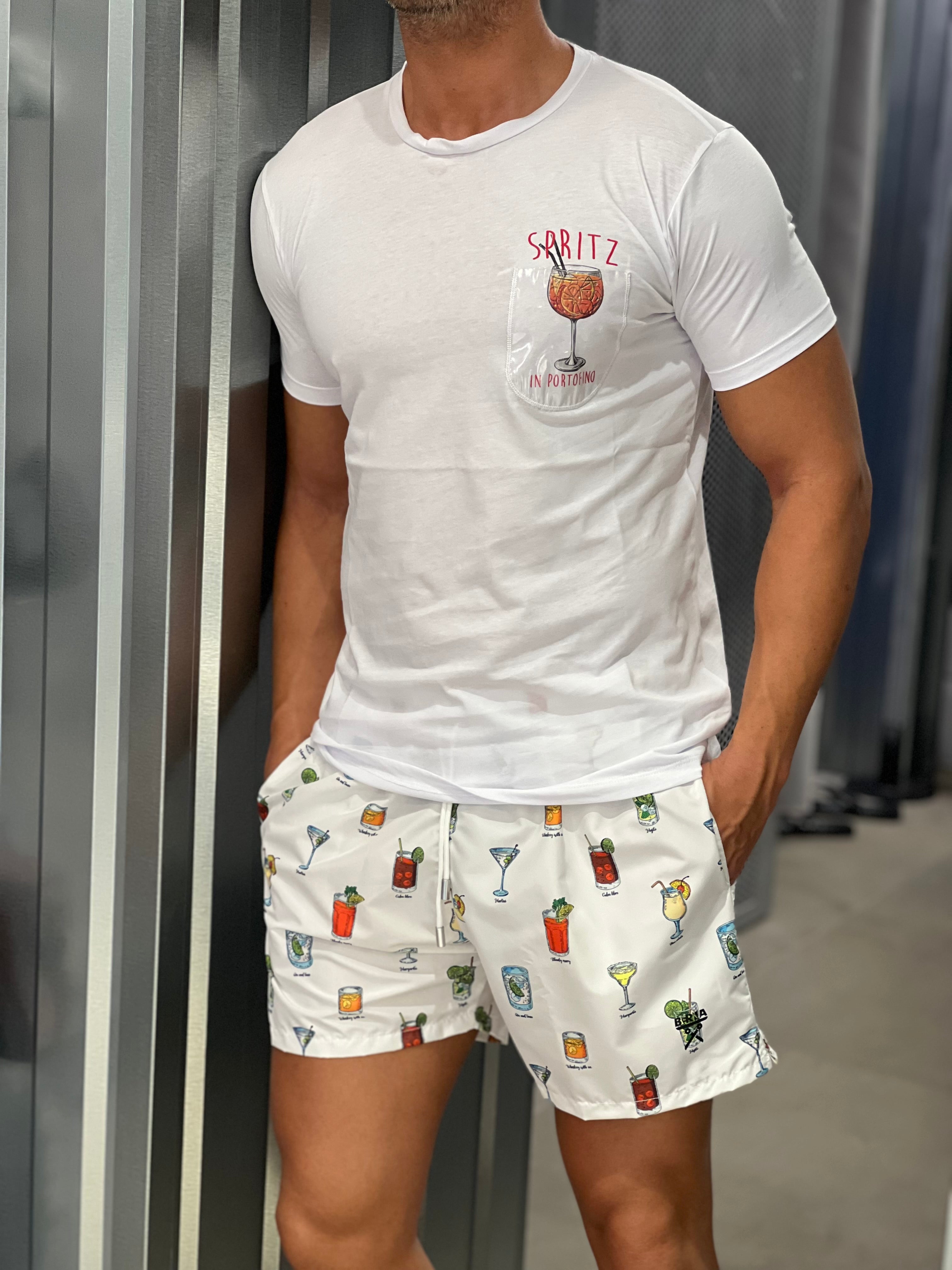 Modello : indossa una taglia m , pesa 79 kg , colore bianco con disegni drink