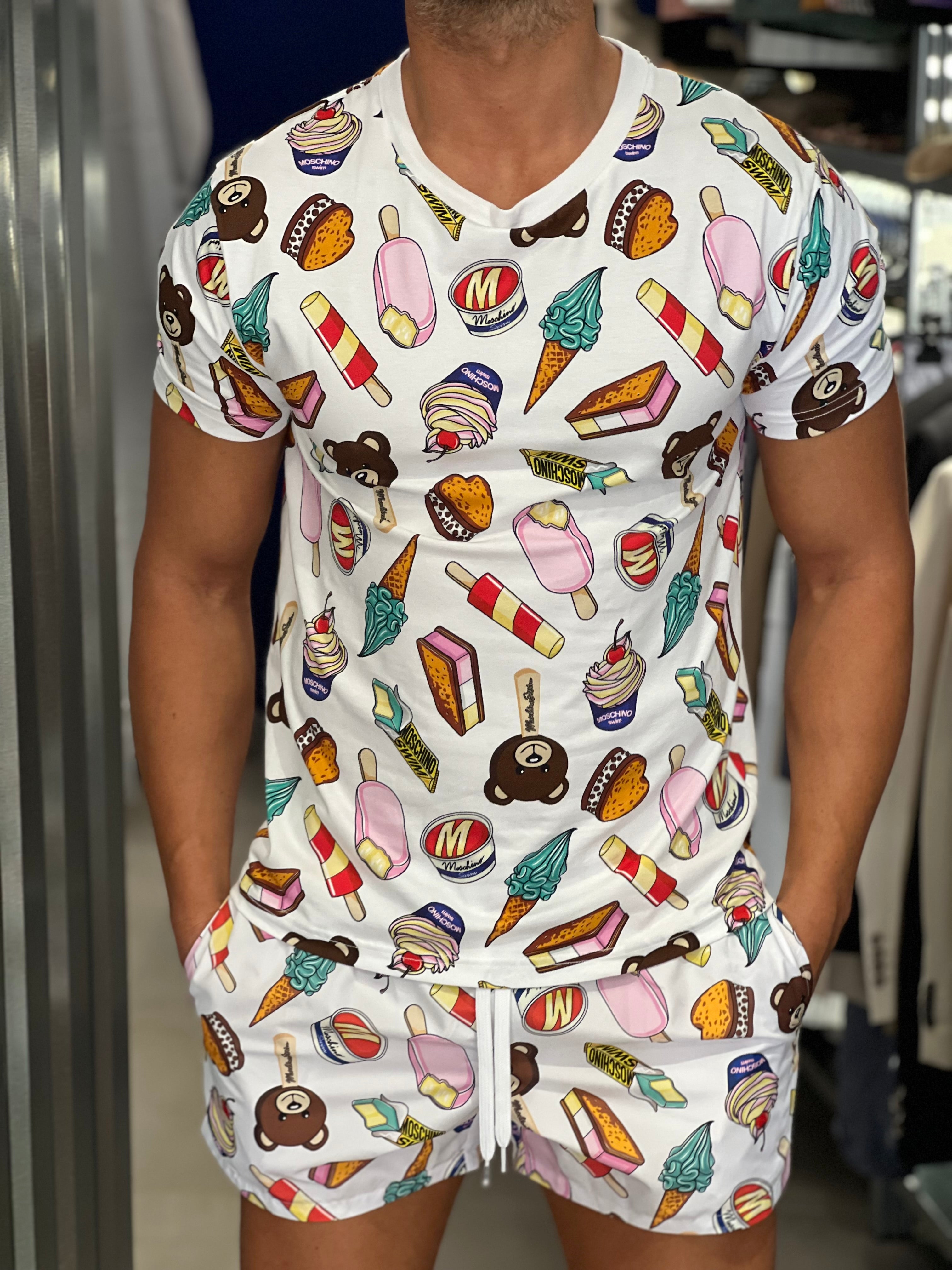Costume Moschino bianco con gelati colorati , regolabili in vita