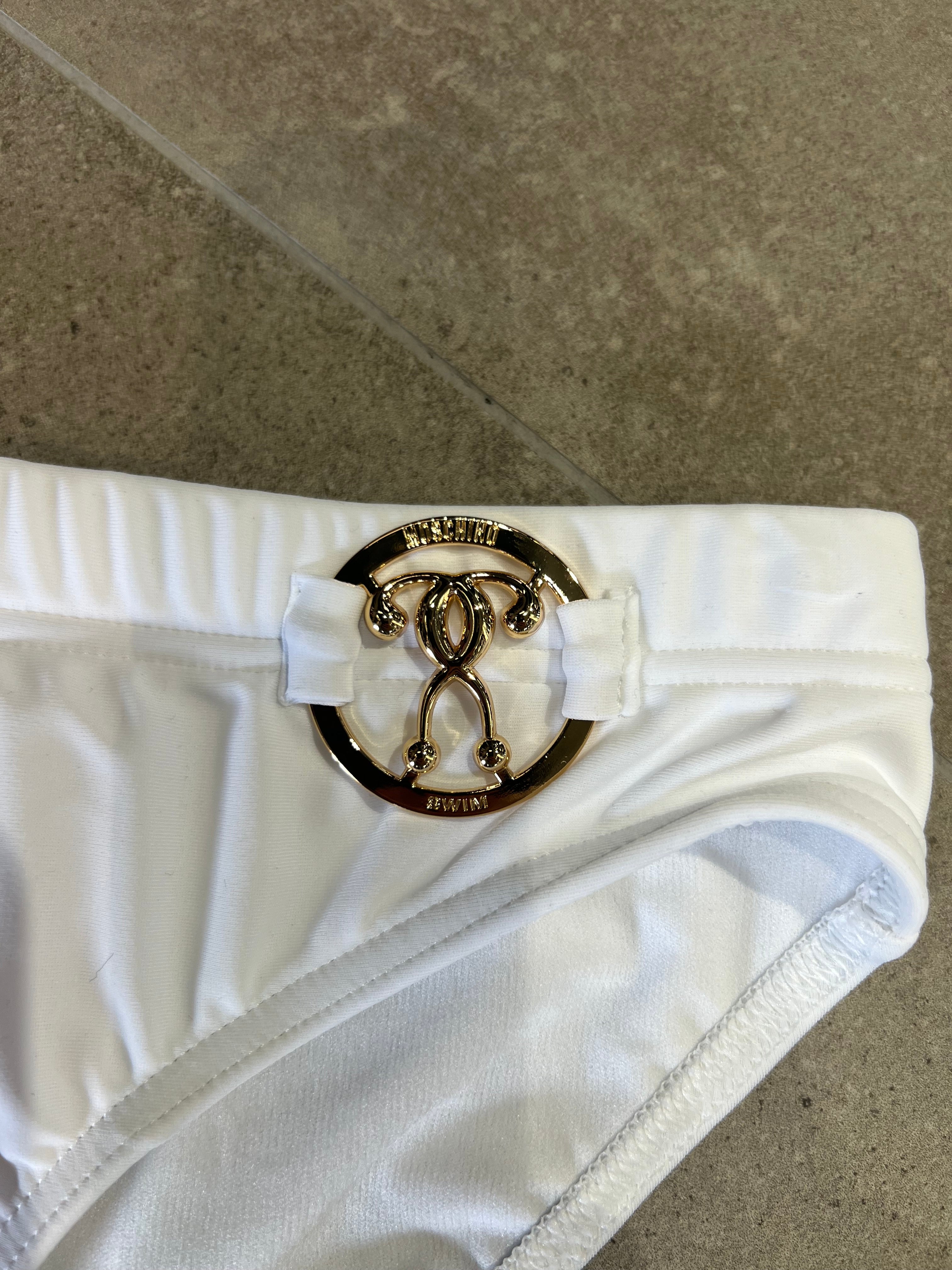 Slip : Moschino con cerchio oro laterale , lacci regolabili , scritta dietro