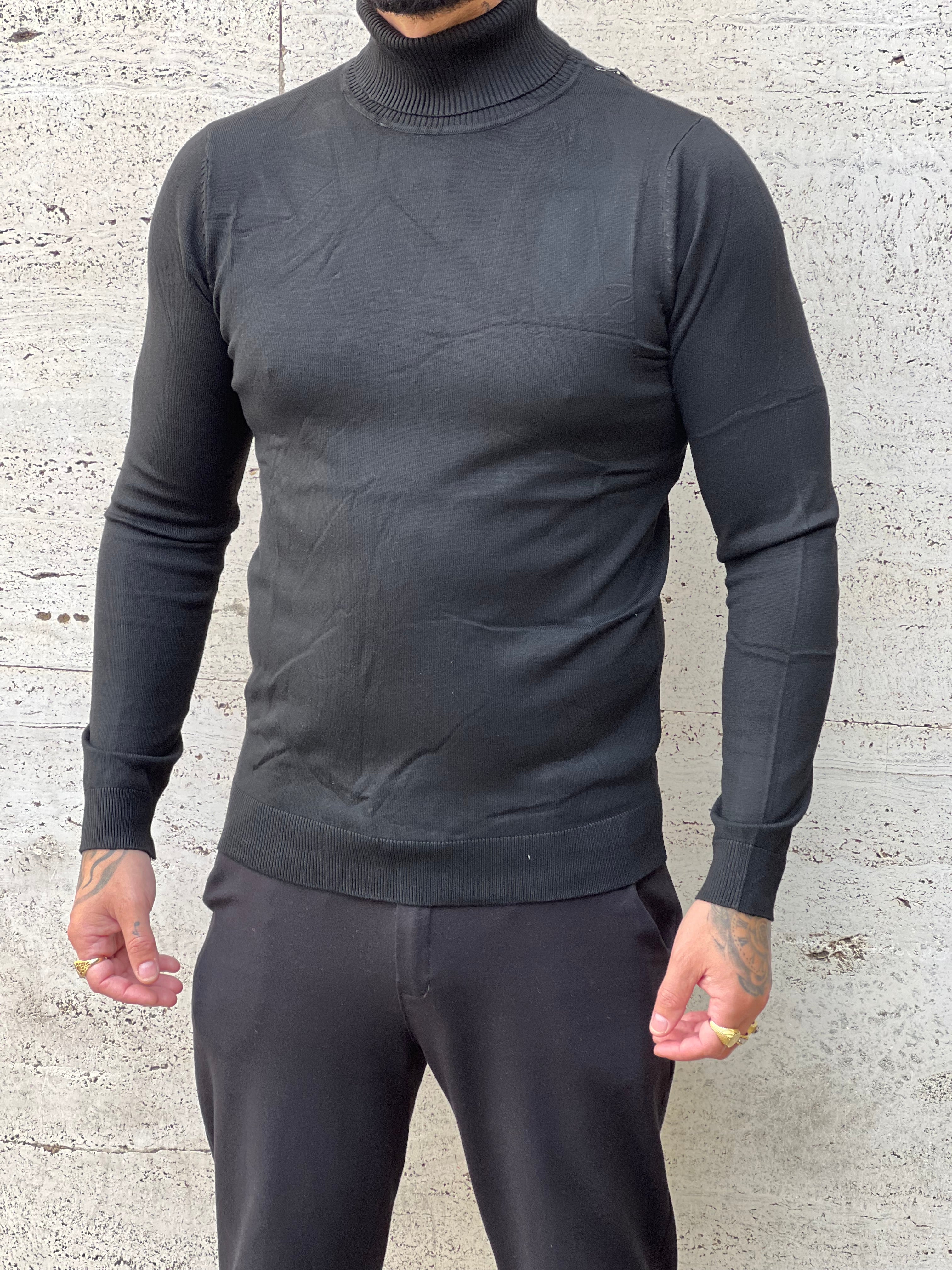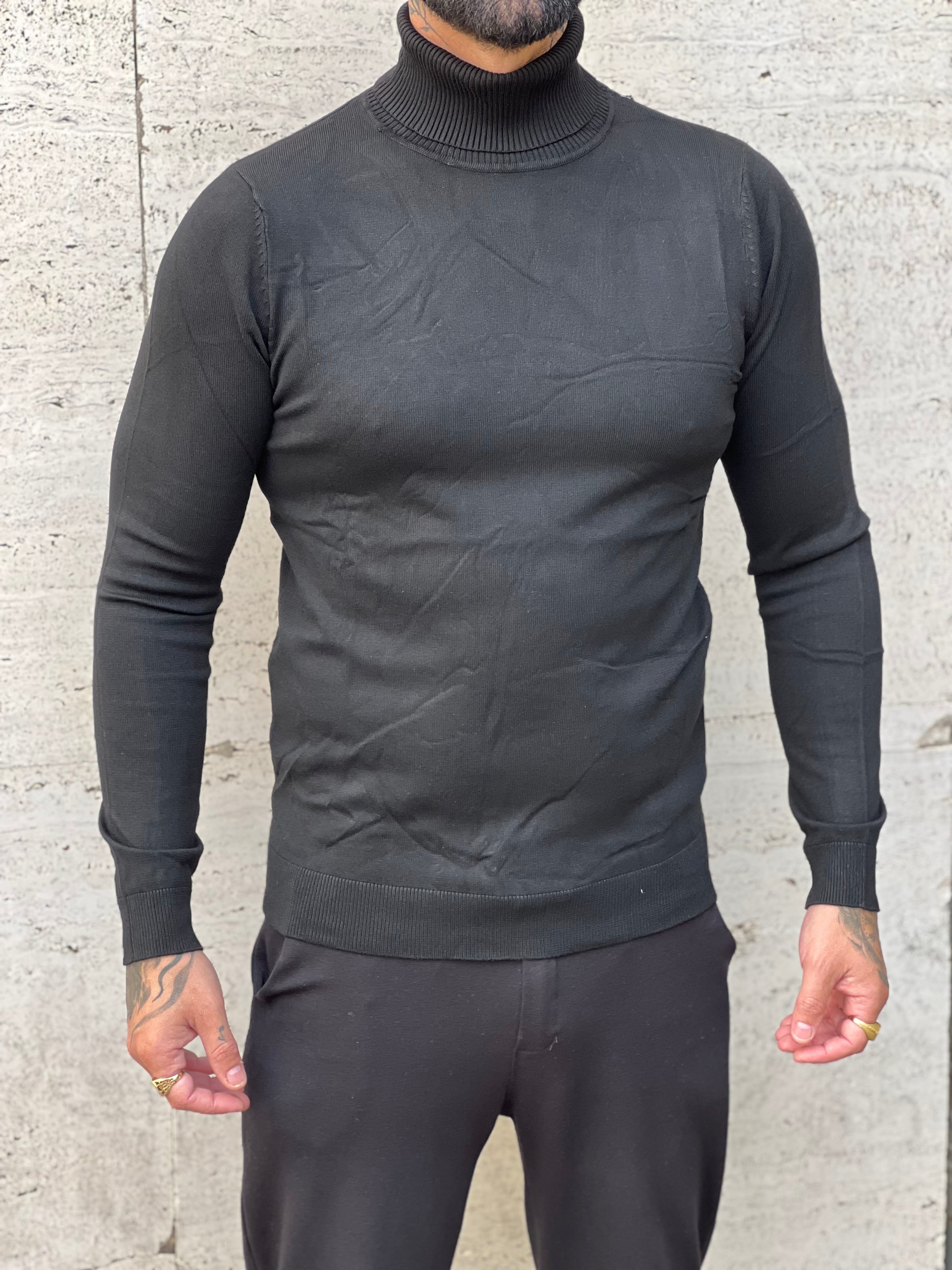 Maglioncino : collo alto , tessuto  viscosa, Vestibilita ‘ morbida , 70% viscosa ,5% elastico , 25% poliamida