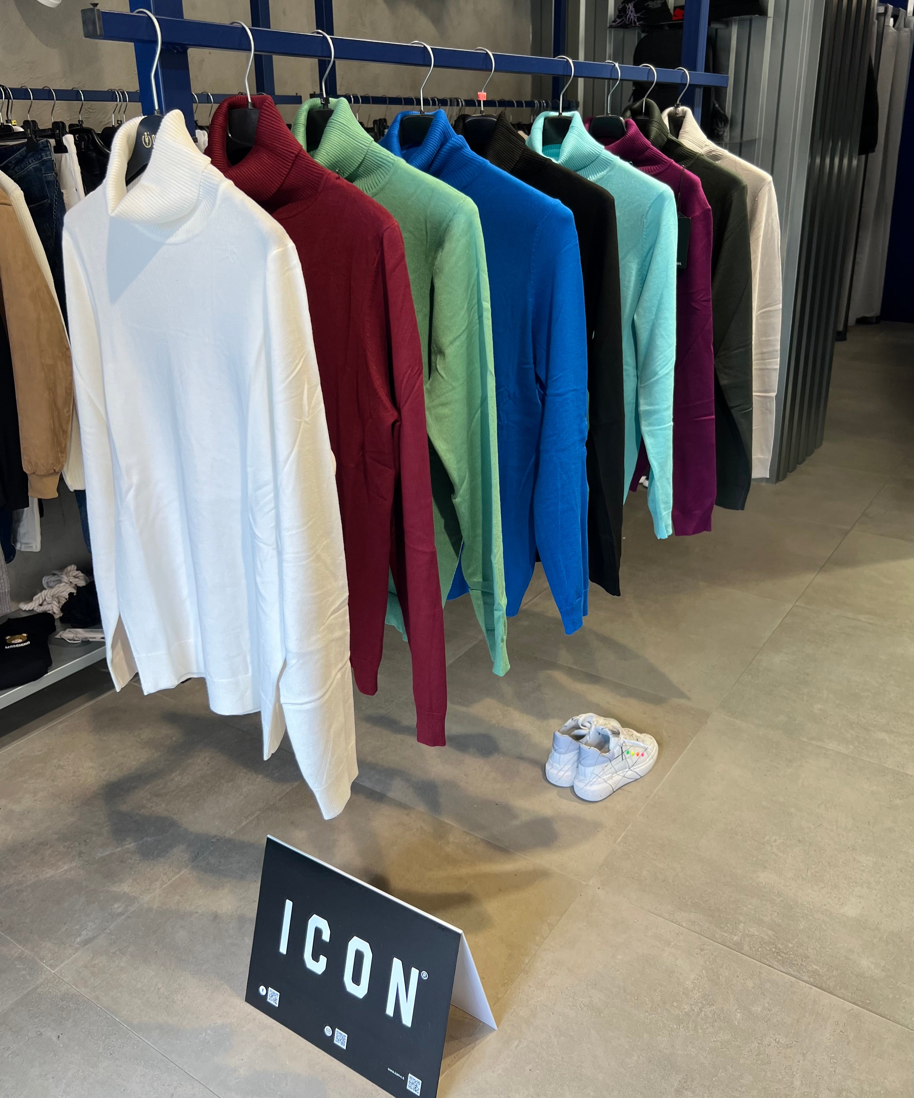 Maglioncino : collo alto , tessuto  viscosa, Vestibilita ‘ morbida , 70% viscosa ,5% elastico , 25% poliamida