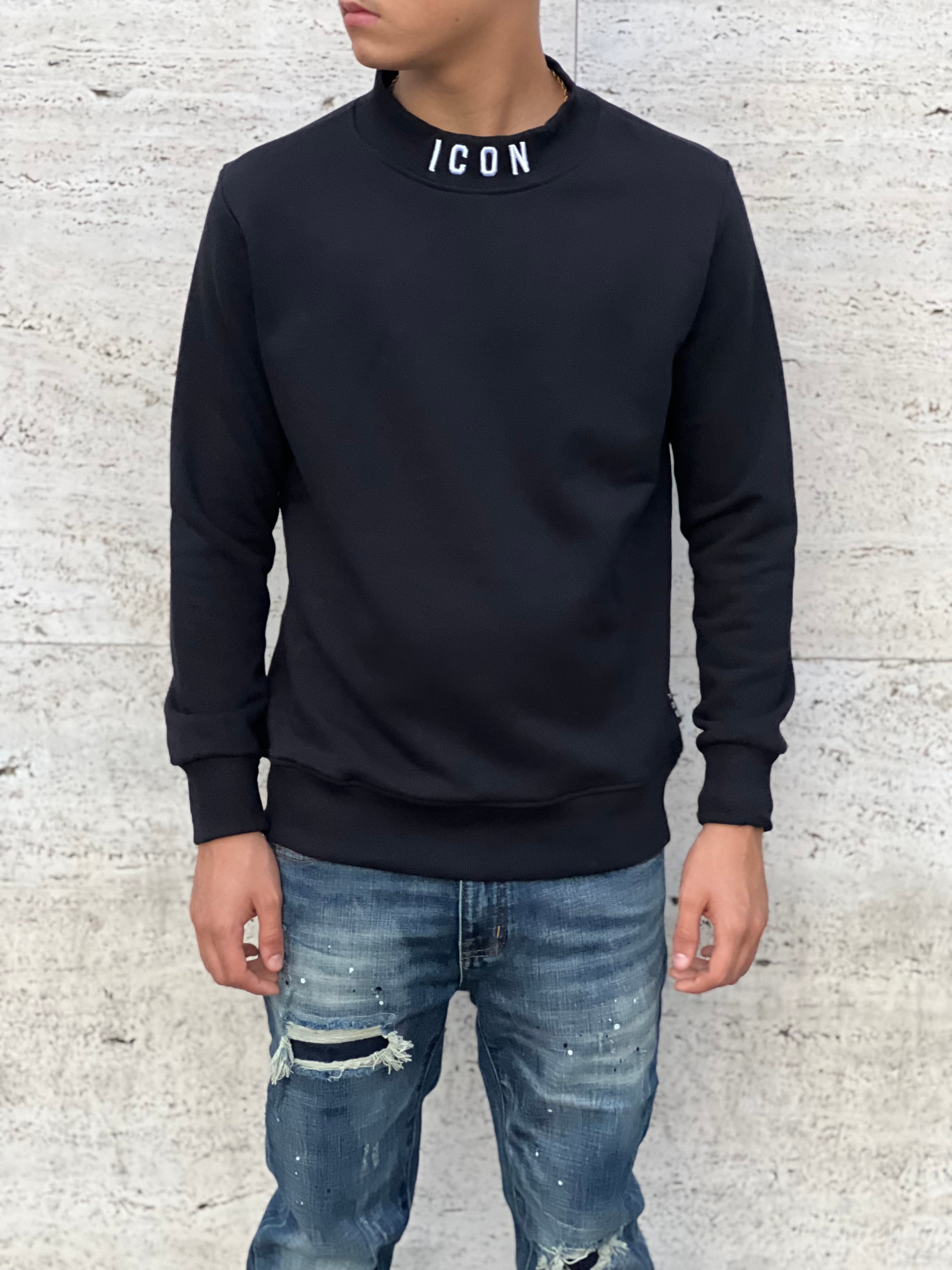 Felpa icon , colore nero , mezzo collo con scritta , Vestibilita ‘ morbida ,