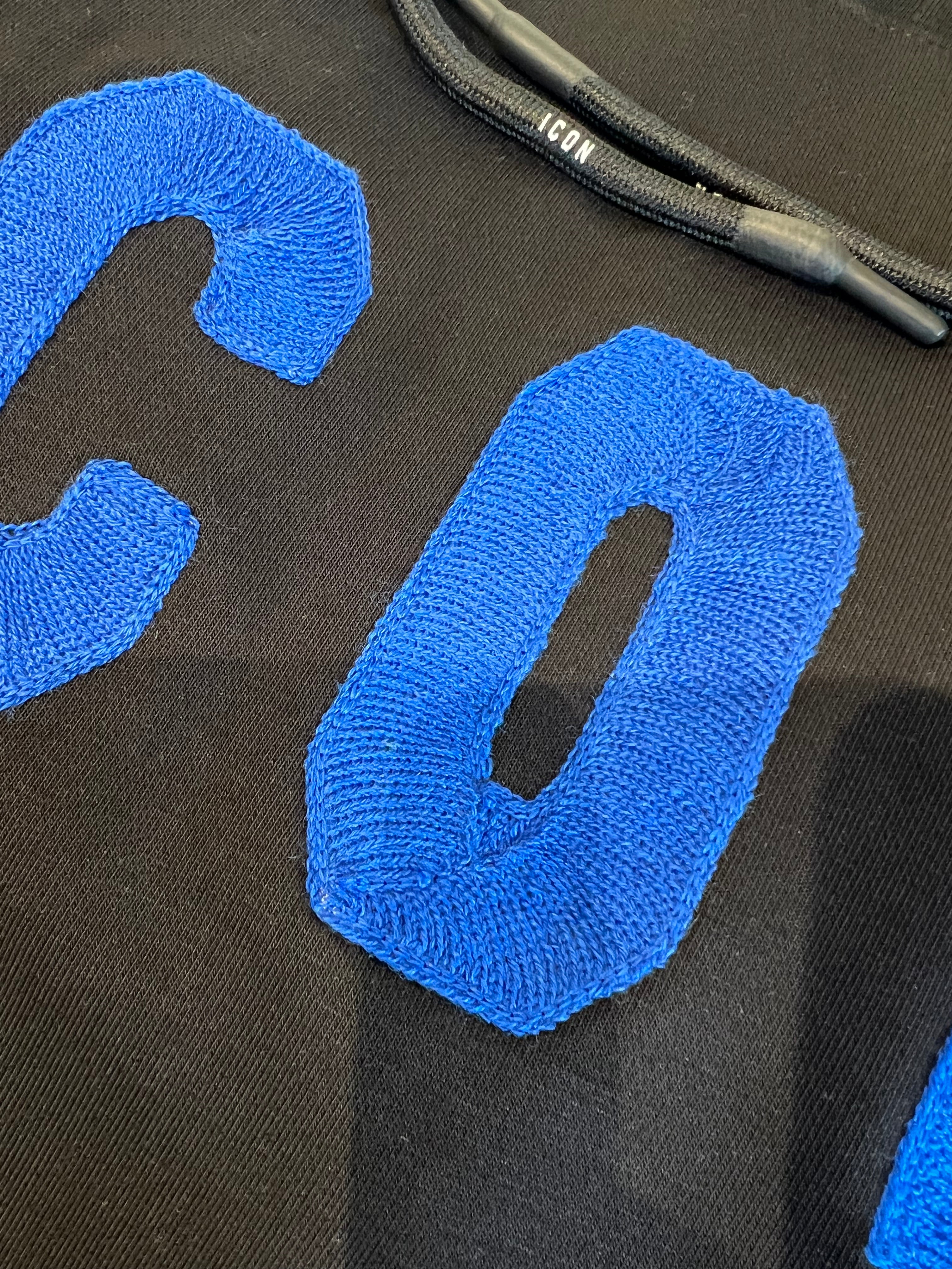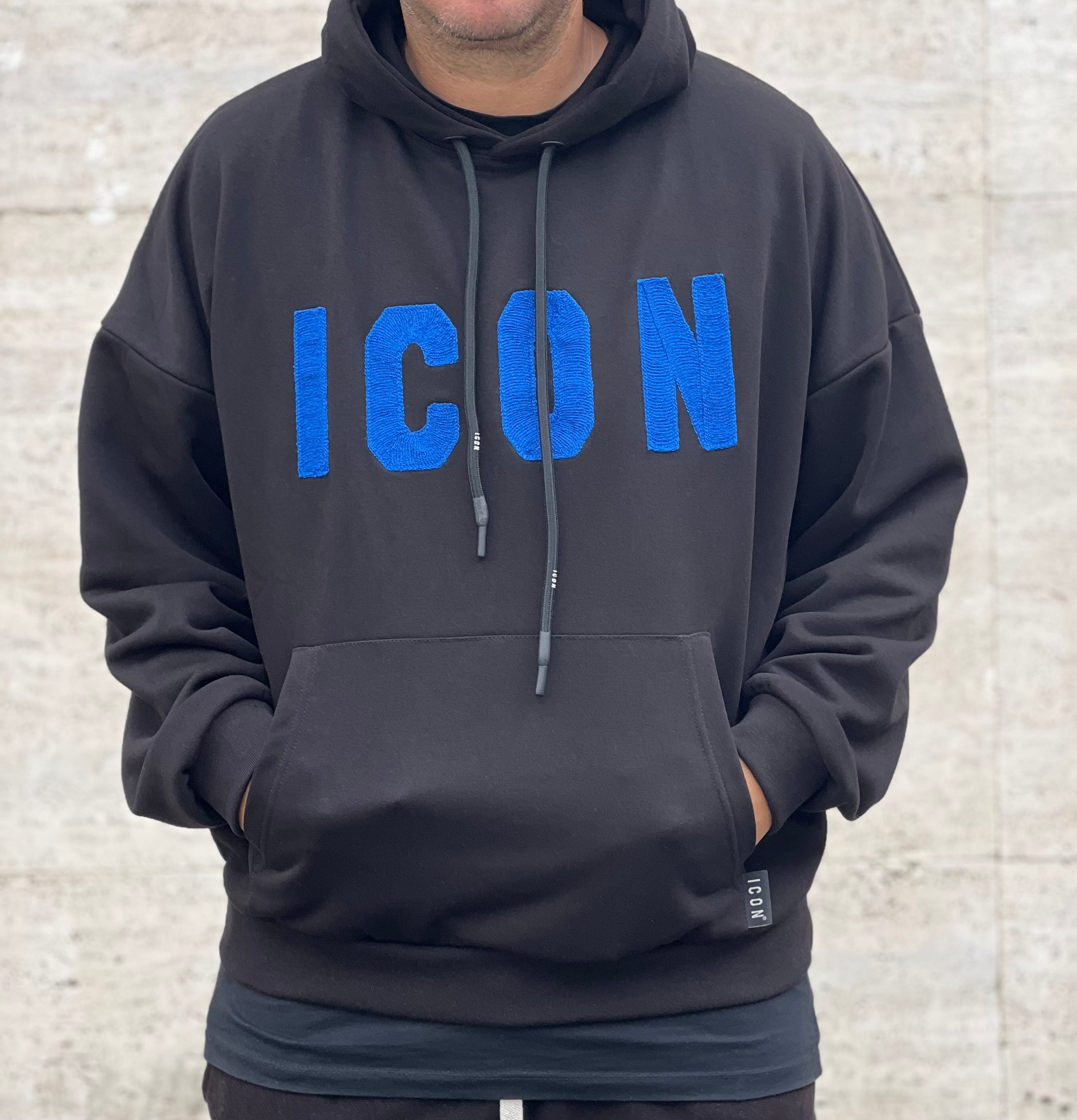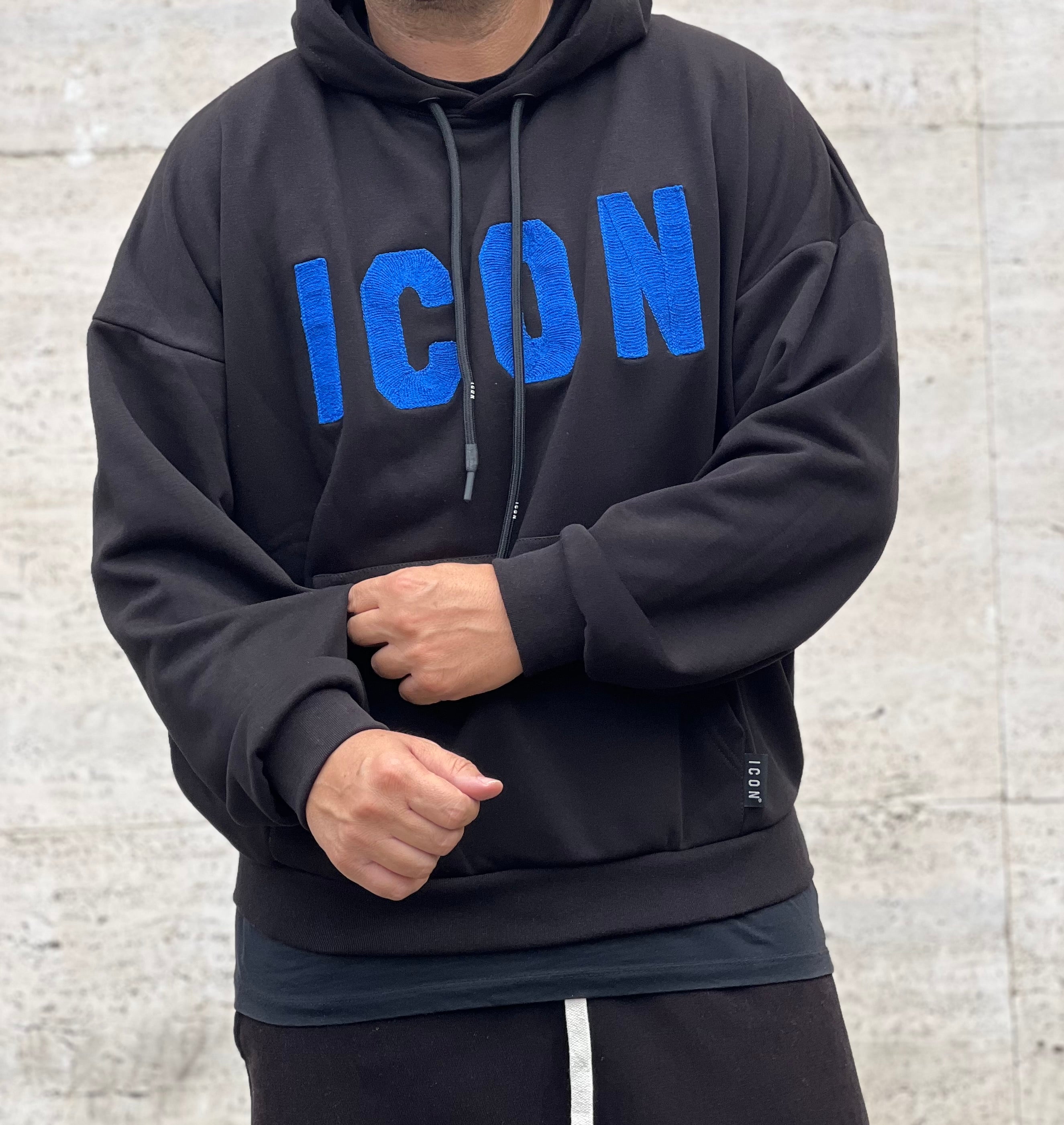 Felpa ICON nera con ricamo blu , Vestibilita ‘ poco over