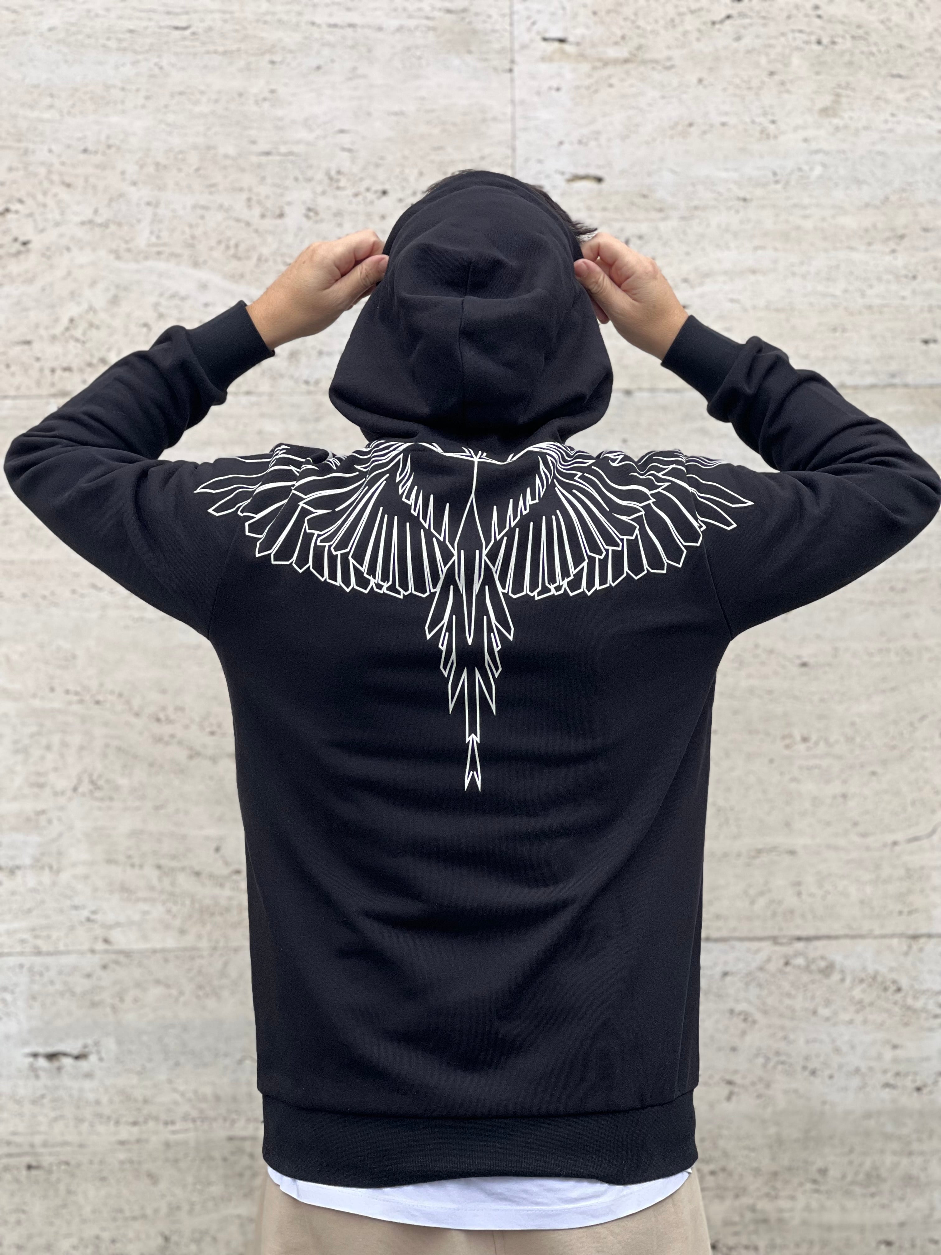 Felpa : colore grigio , con capuccio ,ali davanti e dietro ,