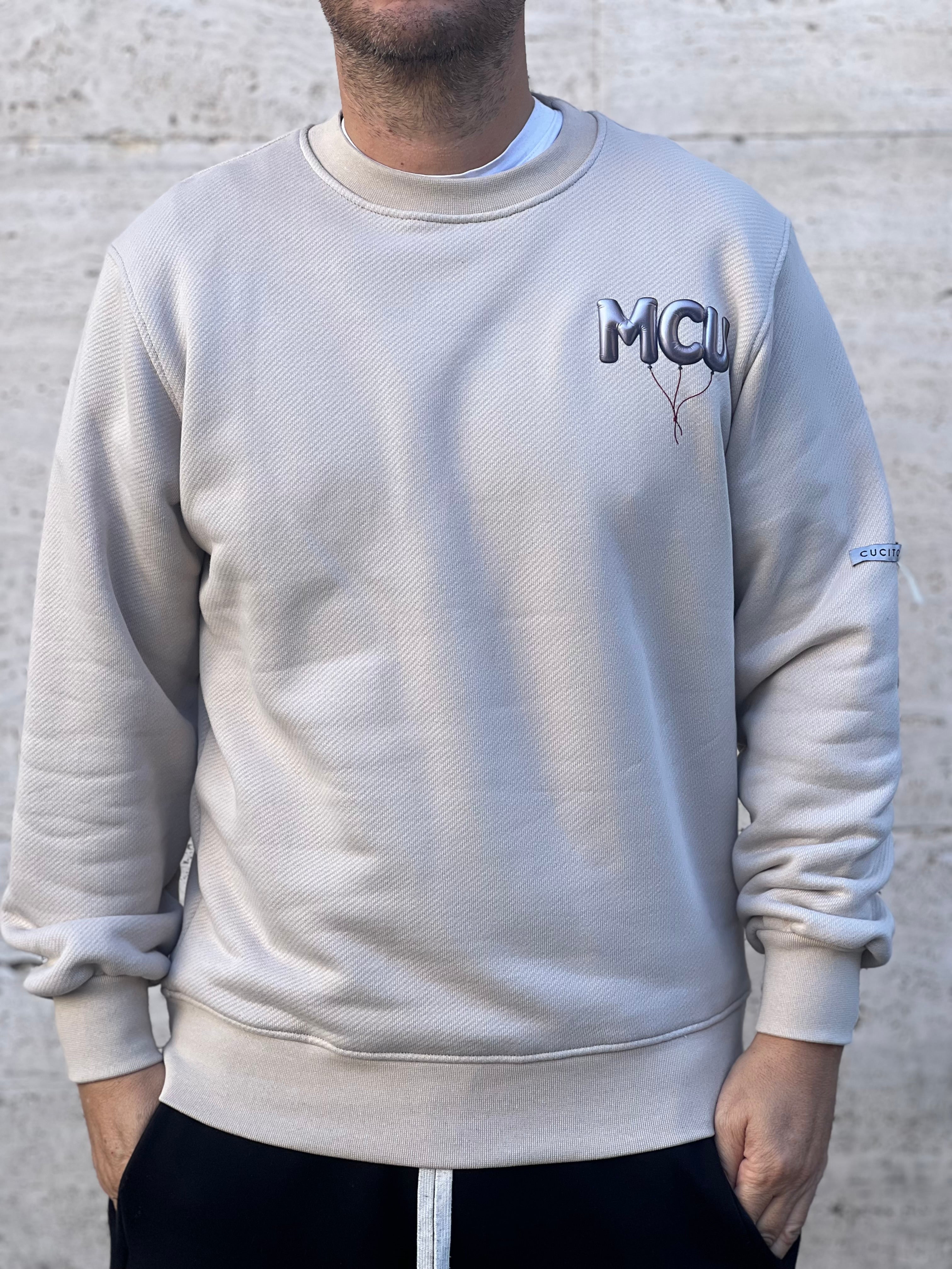 Felpa : girocollo , con Swarovski dietro , colore beige , Vestibilita ‘ morbida