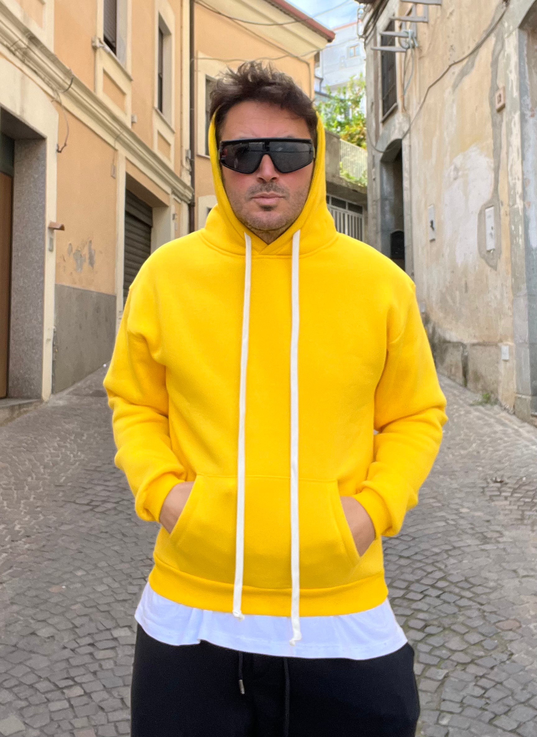 vestibilita ‘ : morbida e comoda , con capuccio e tasche sotto