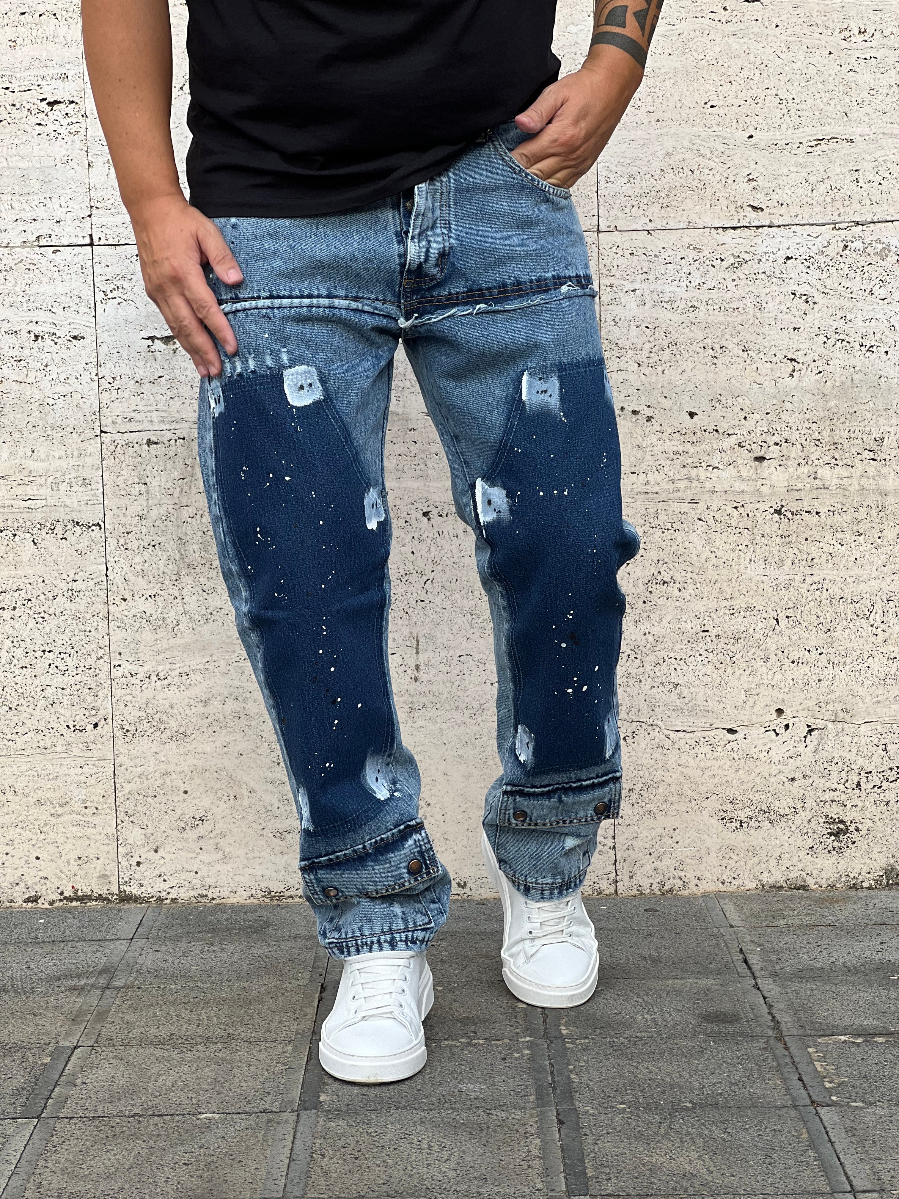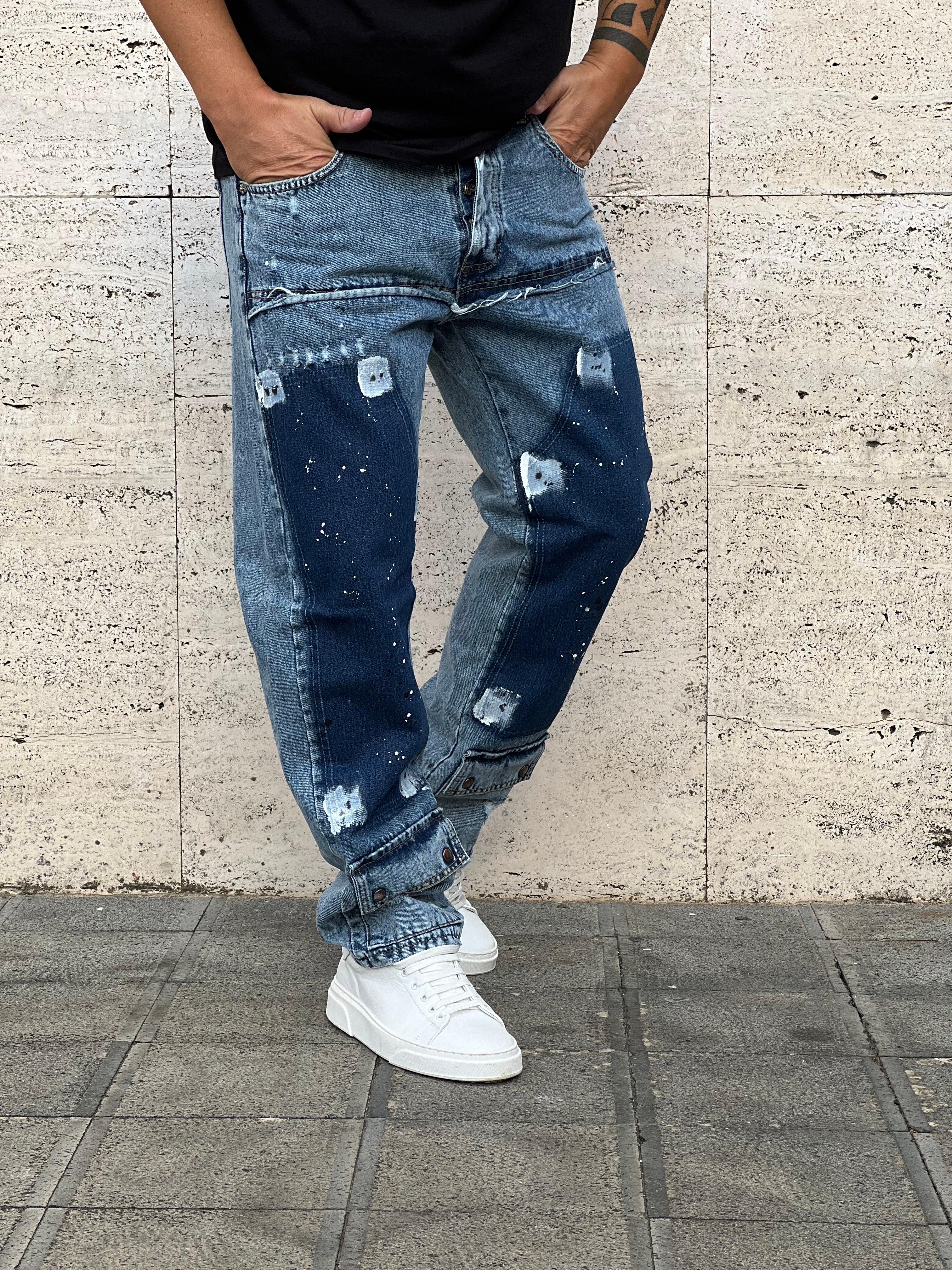 Jeans : con toppe e macchie , tasche alla caviglia ,