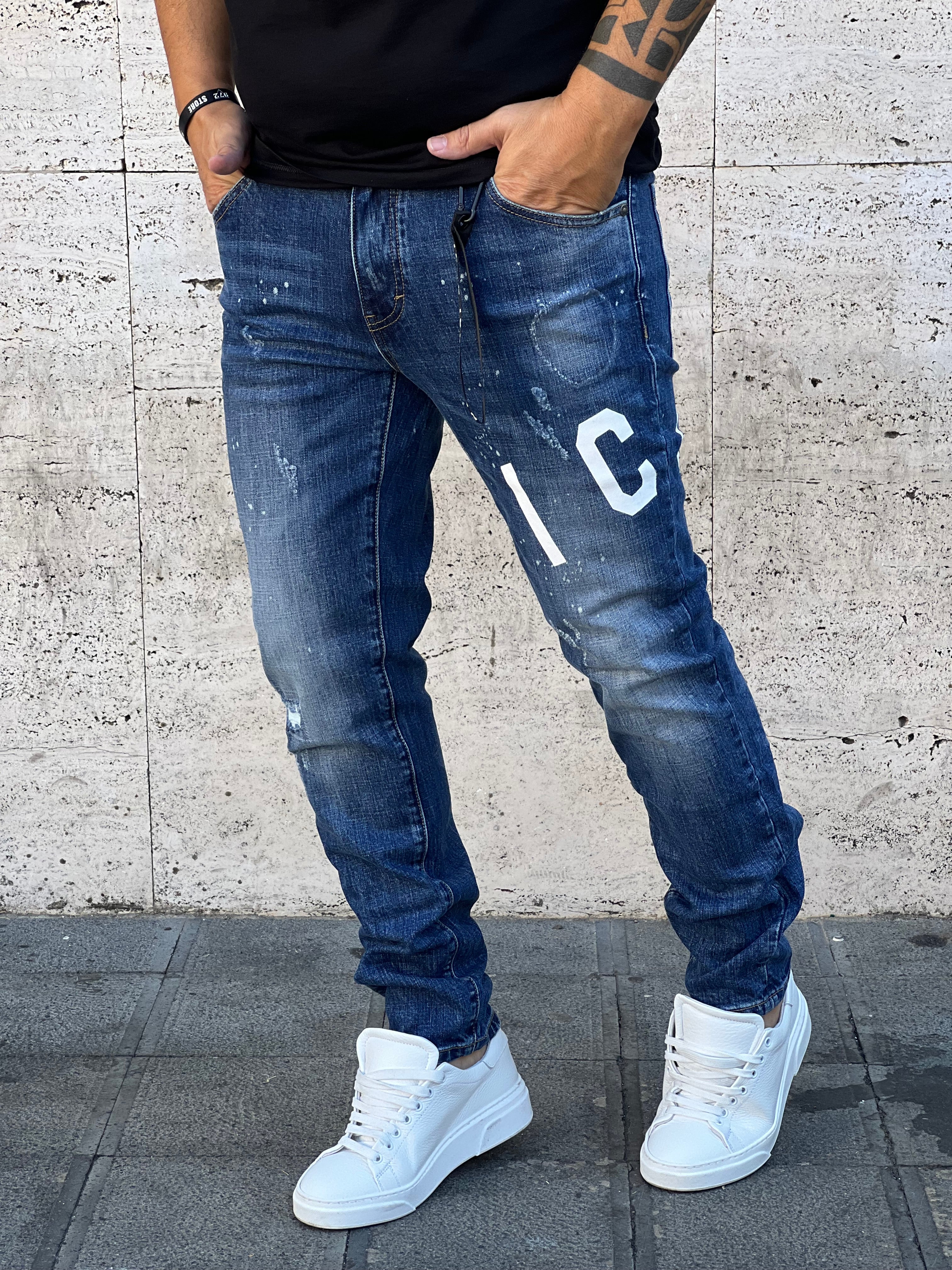 Jeans : poco elastico , scritta giro coscia catenella in regalo , Vestibilita ‘ morbida