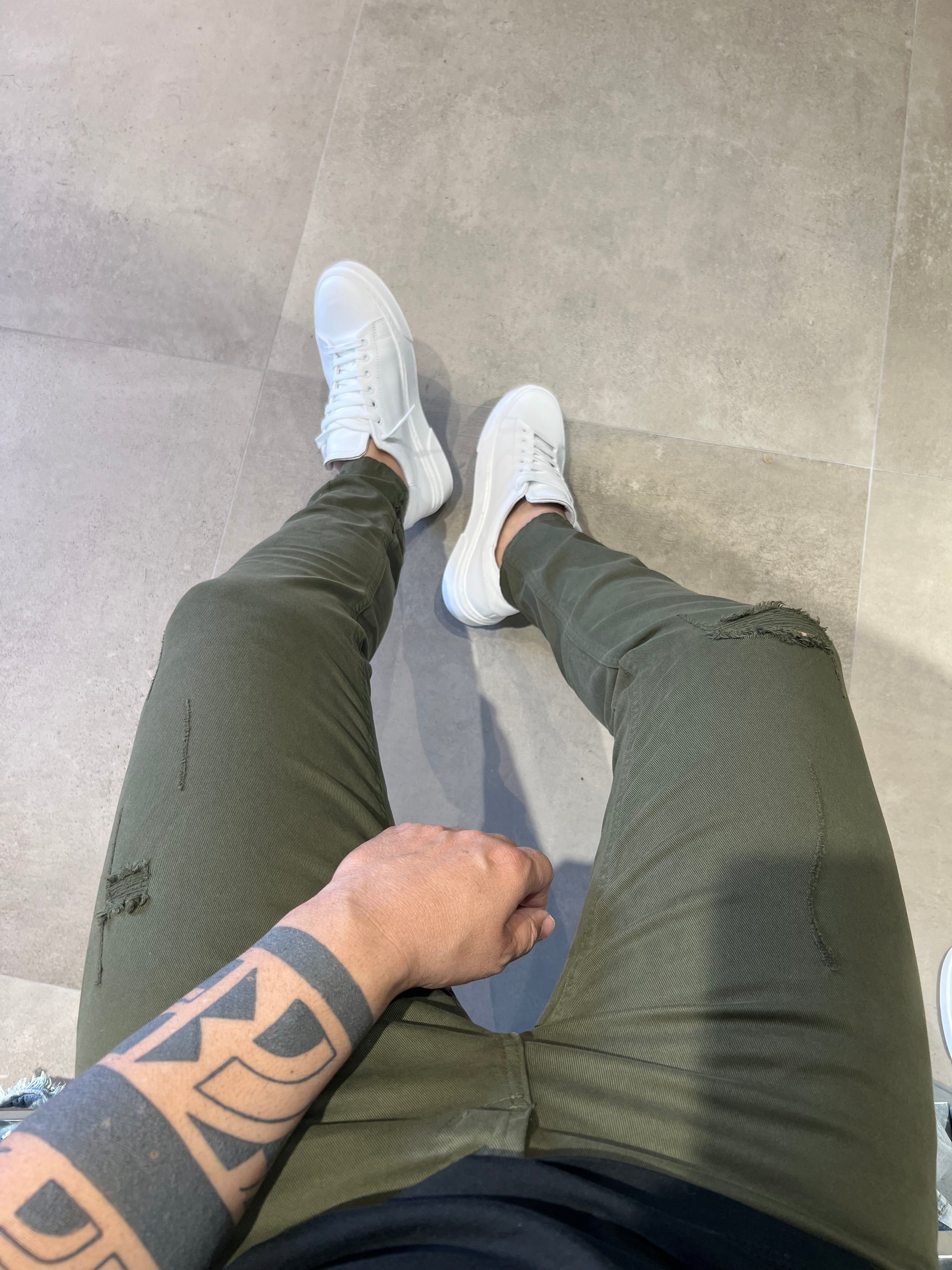 Jeans : colore verde , davanti con strappi Vestibilita ‘ Slim