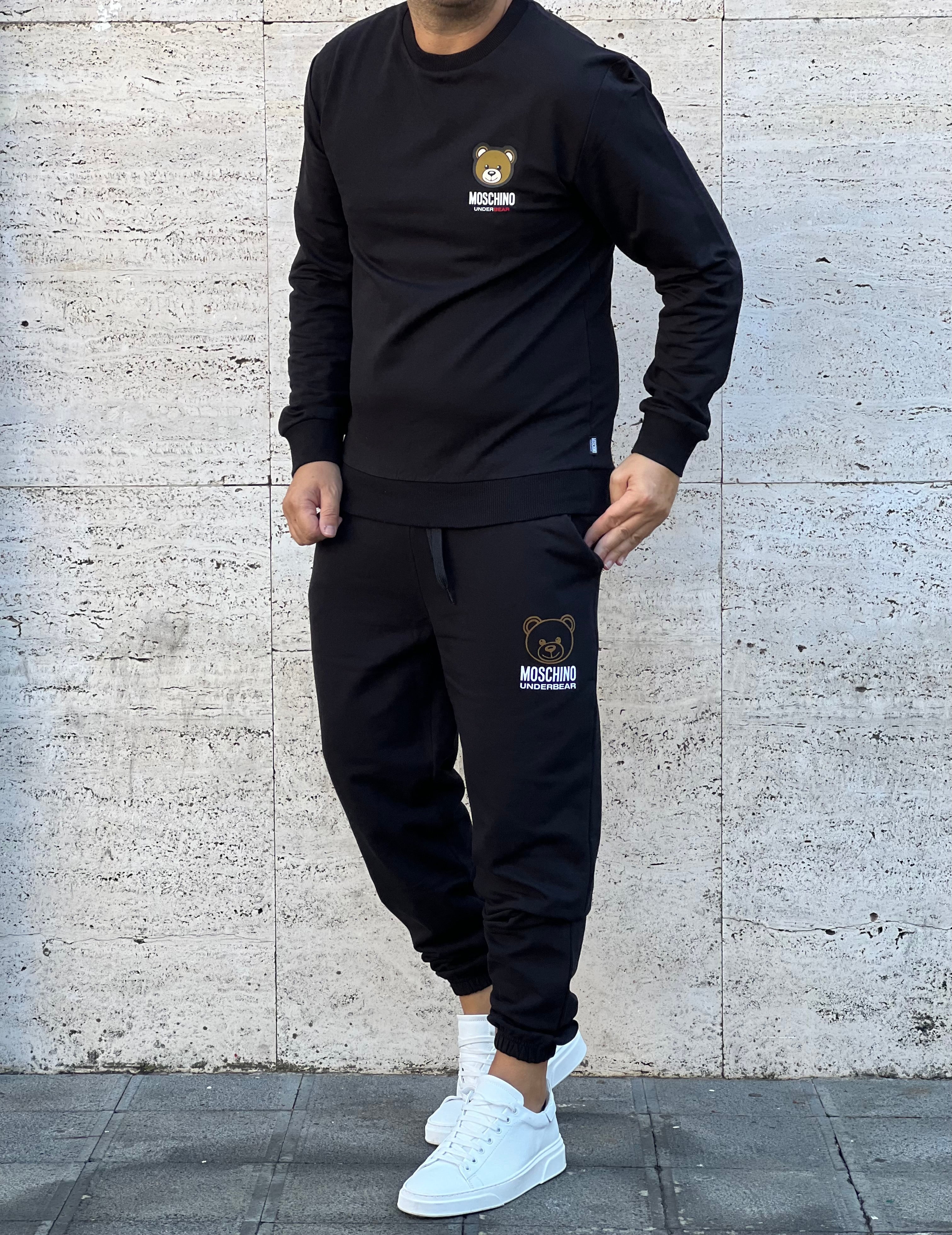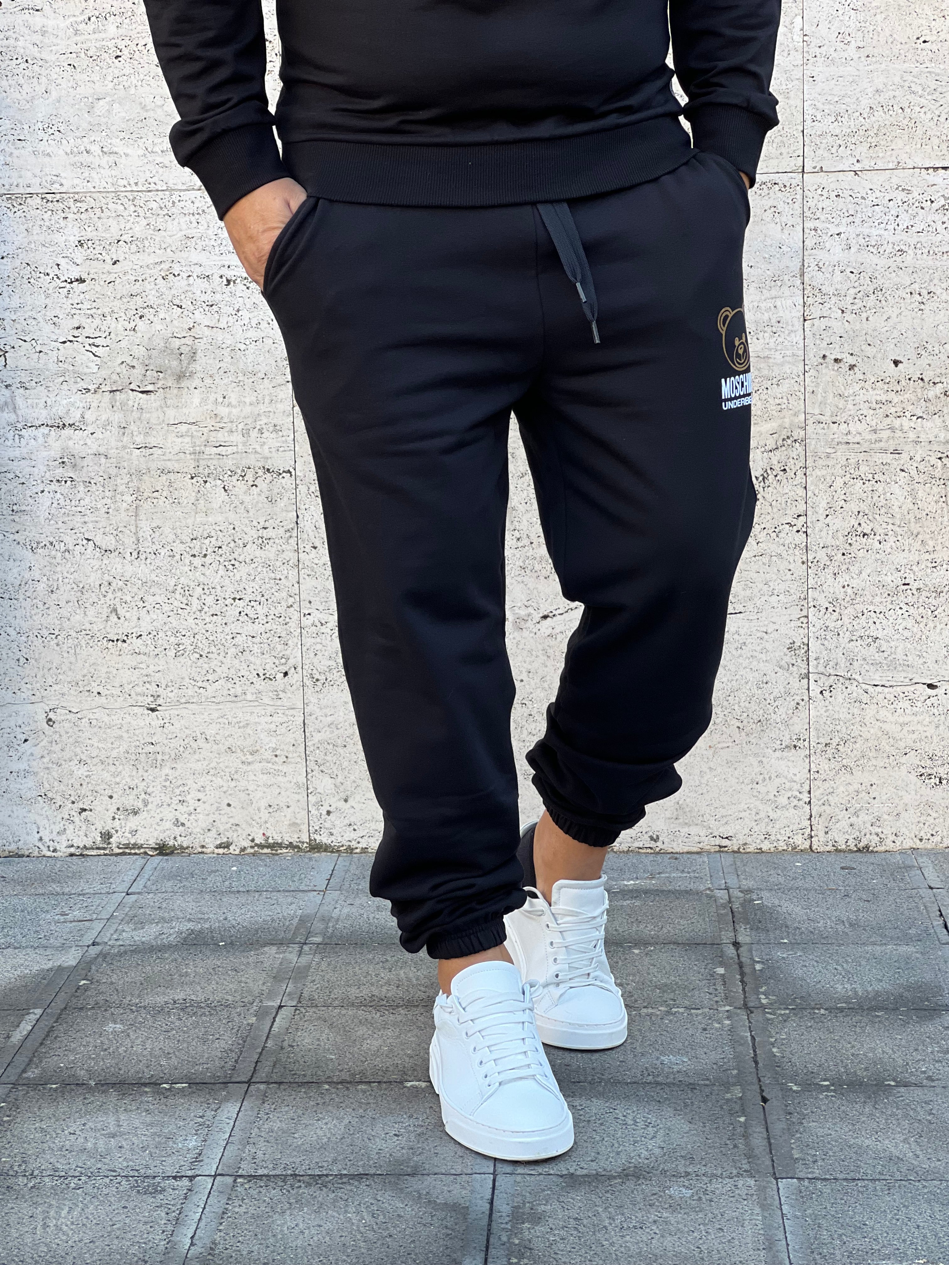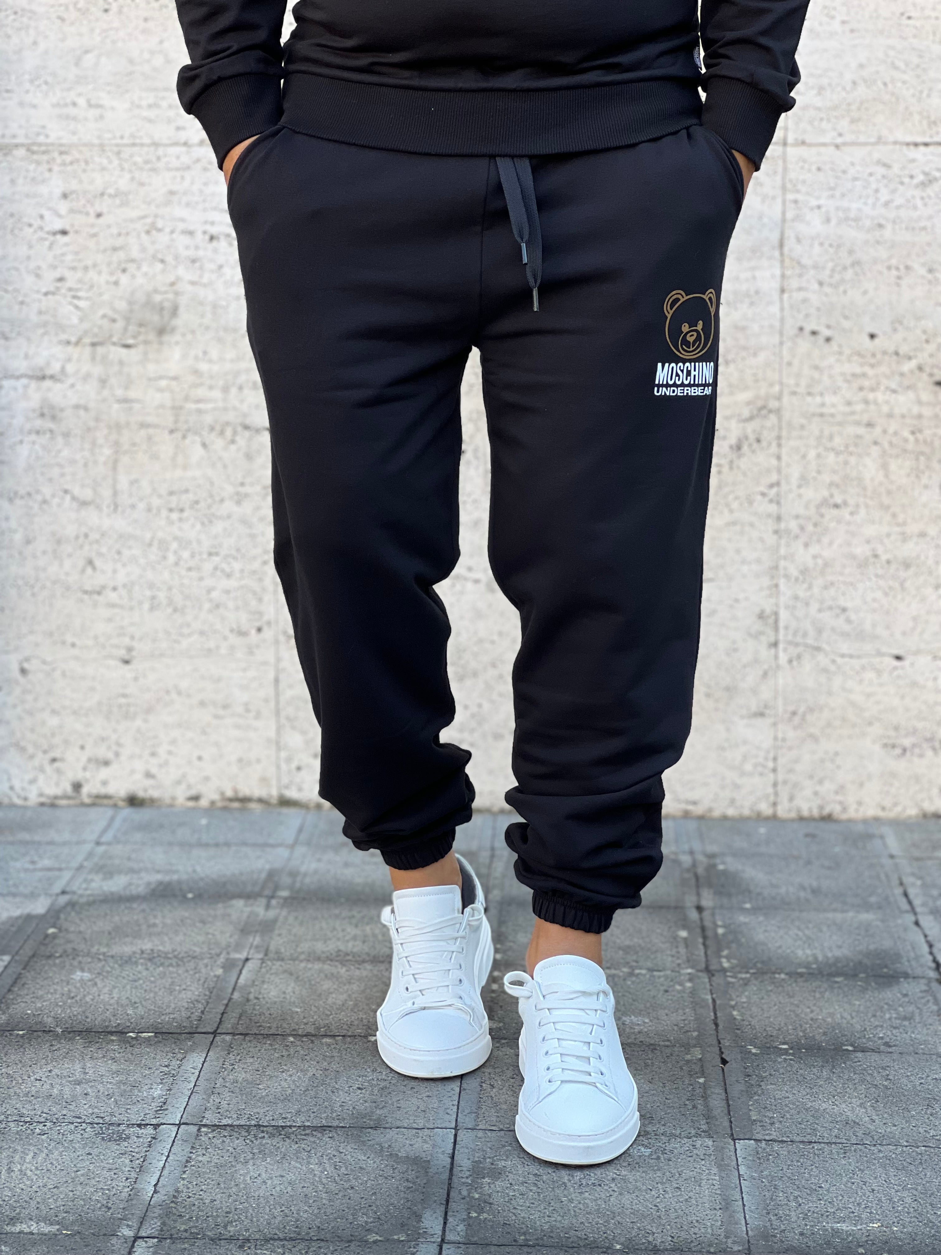 completo : nero con logo lato sinistro , pantalone con tasche e polsini alla caviglia