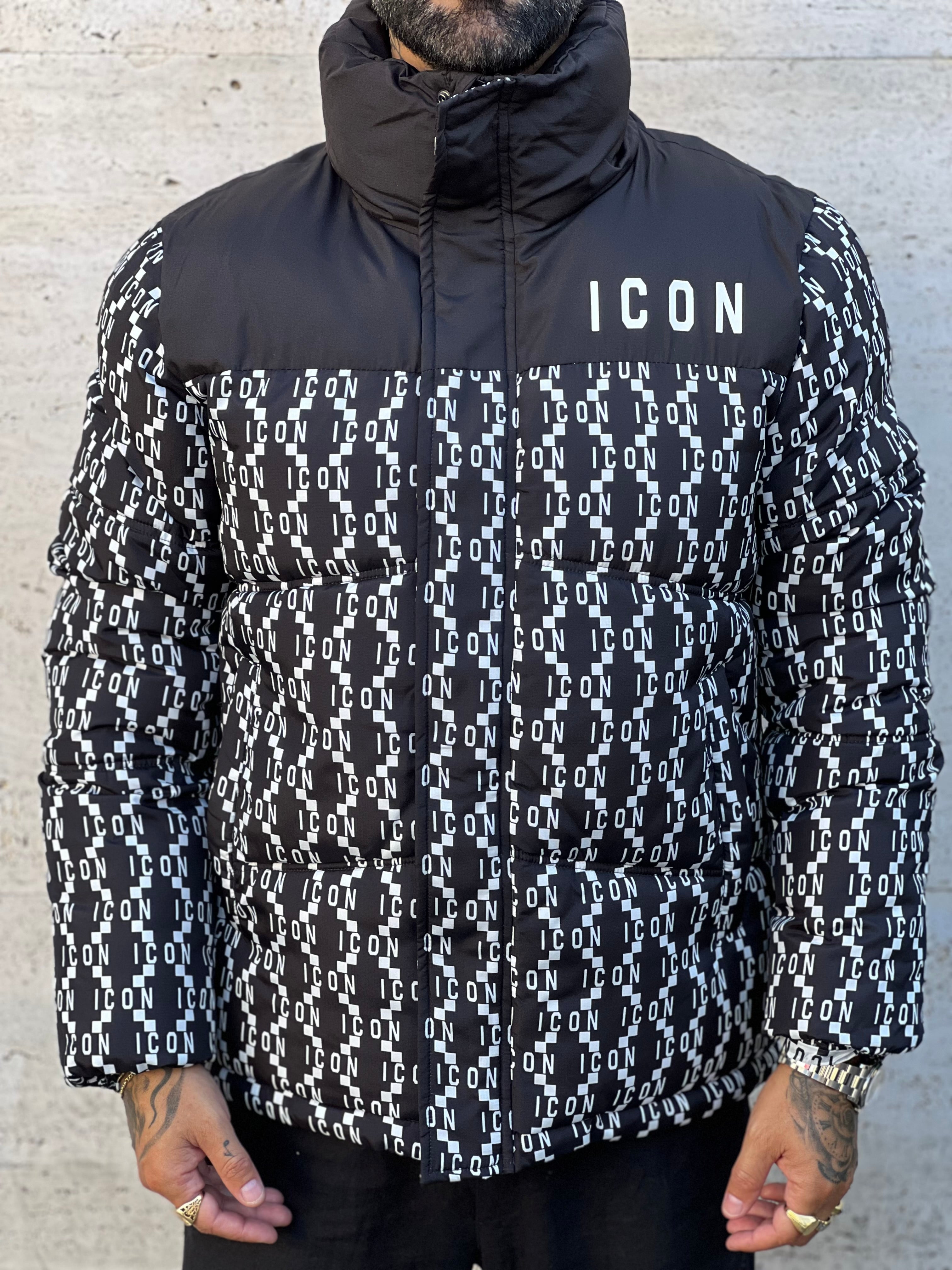 Piumino :imbottito caldo , con collo , colore beige e nero , tasche , cerniere , stampa lato cuore , bretelle internamente quando lo vuoi togliere lo metti attaccato alla schiena ,