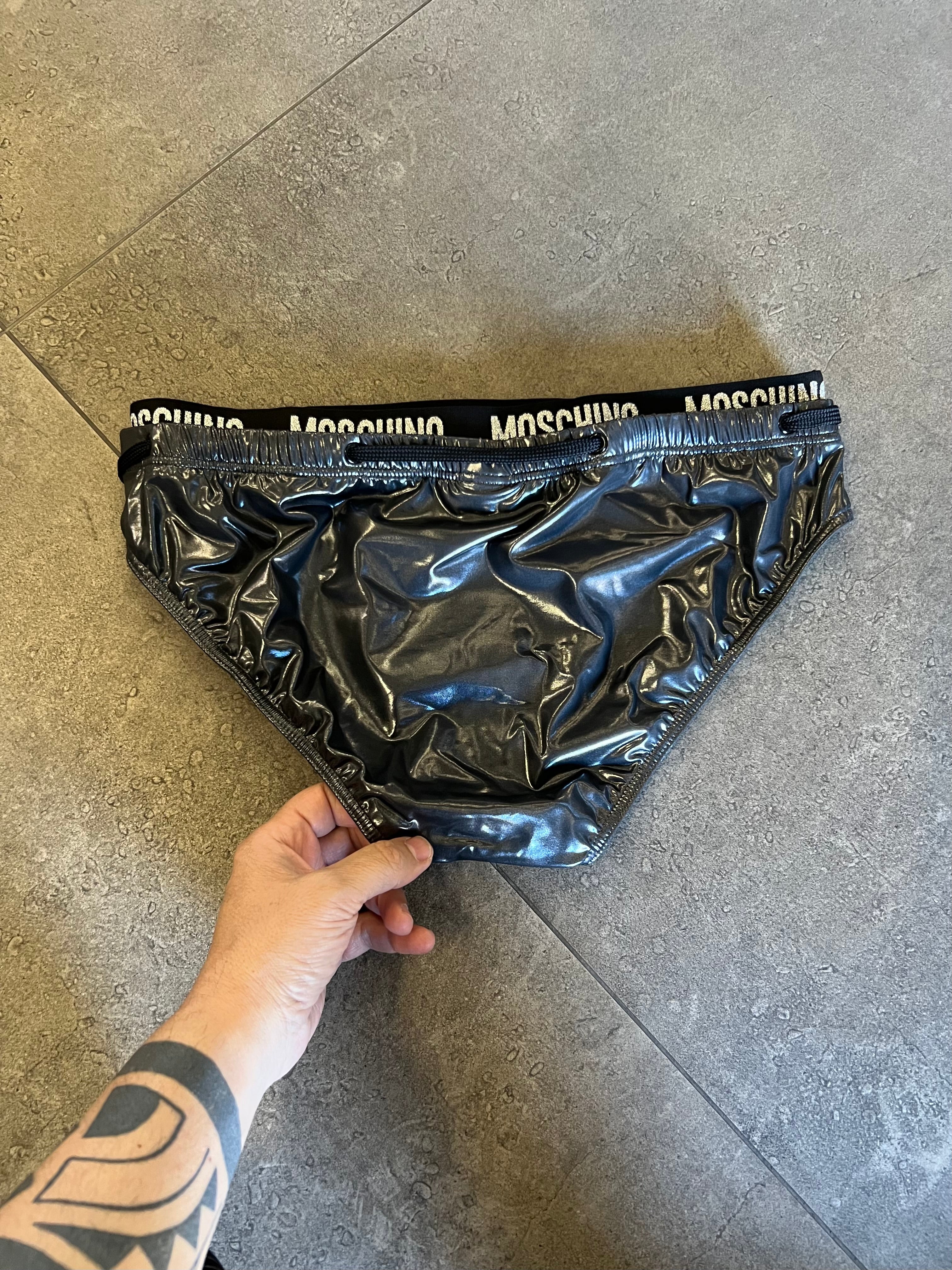 Slip Moschino , colore argento nero , con style muta da con scritta più sopra , edizione limitata solo pochi in Italia