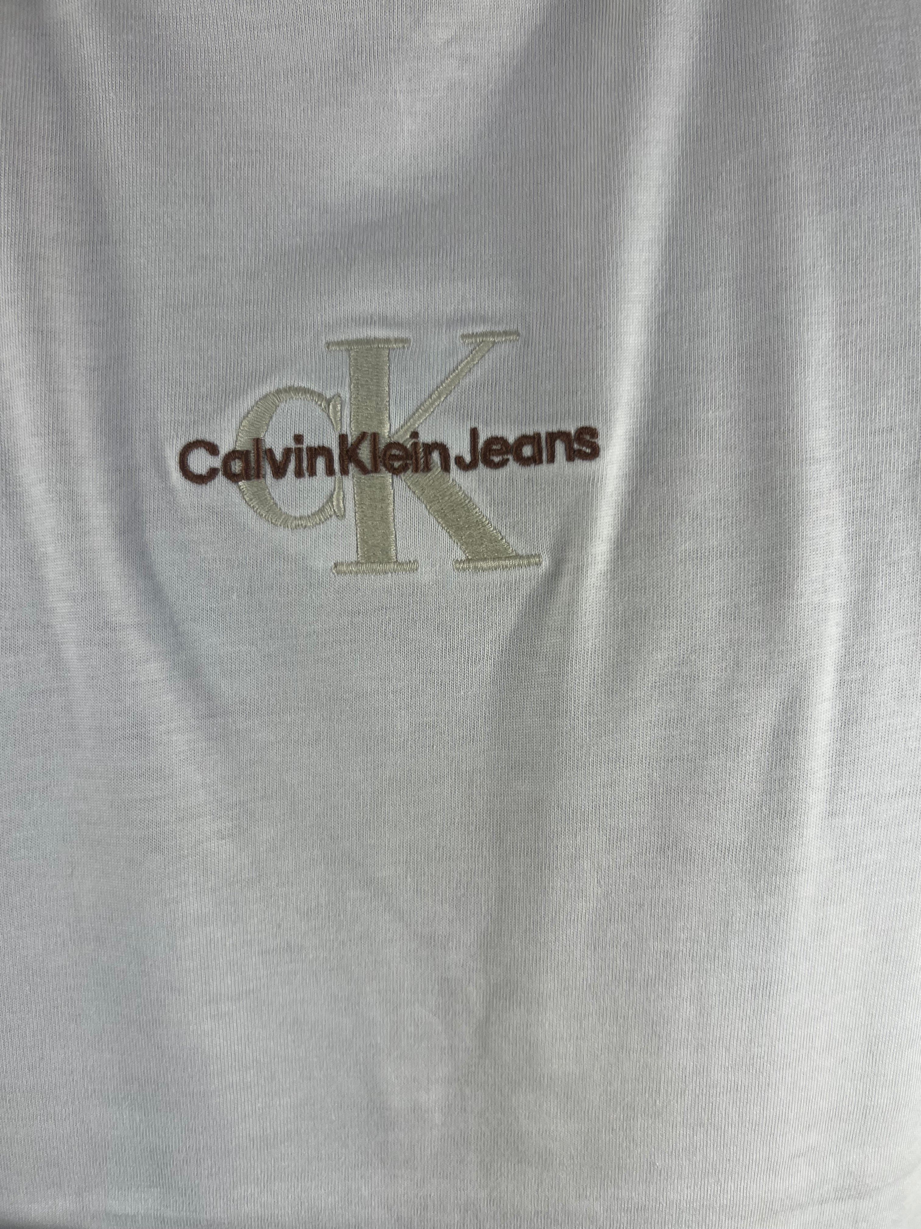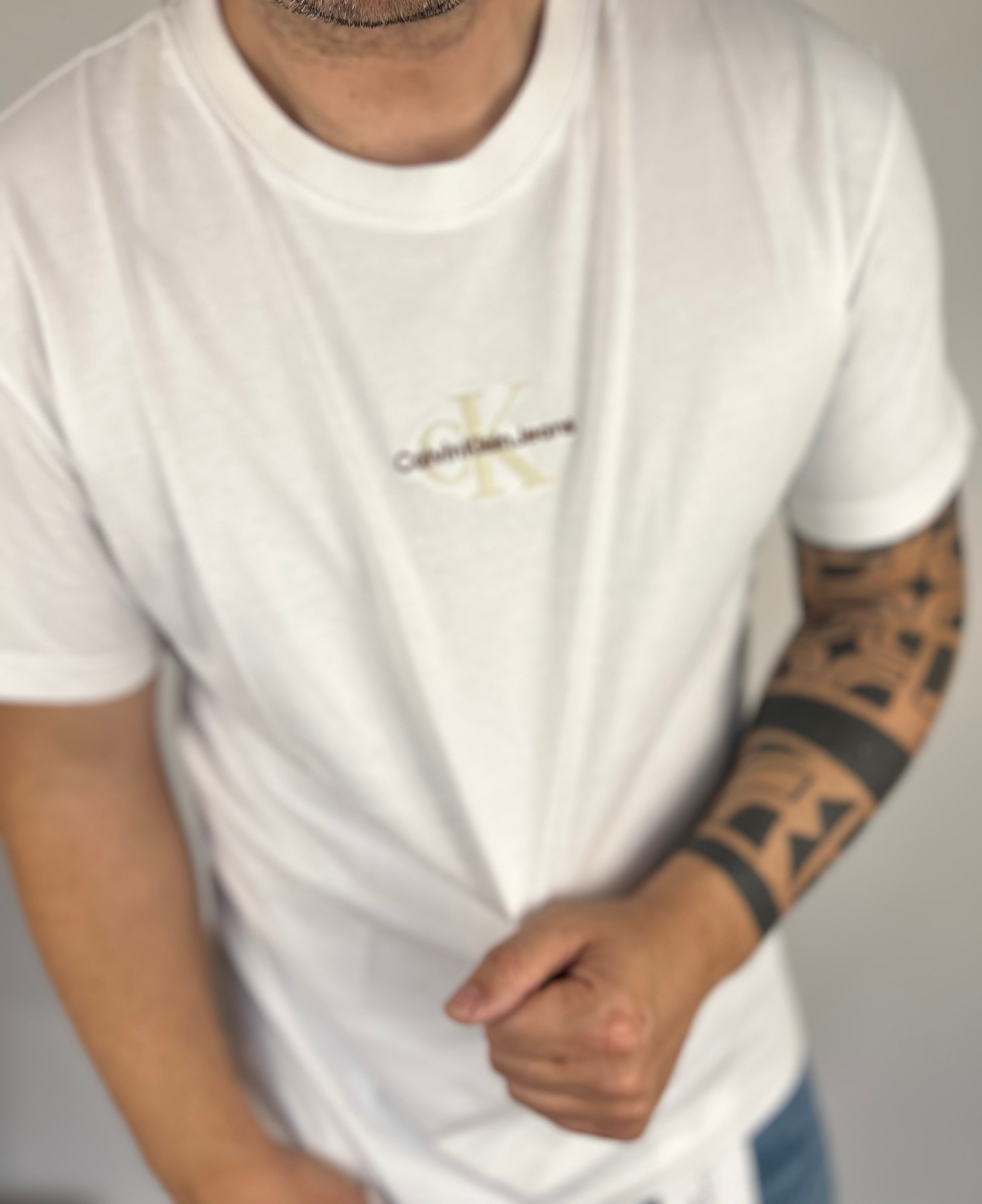 T-Shirt Calvin colore bianco , ricamo al petto , 100% cotone poco elastico , girocollo