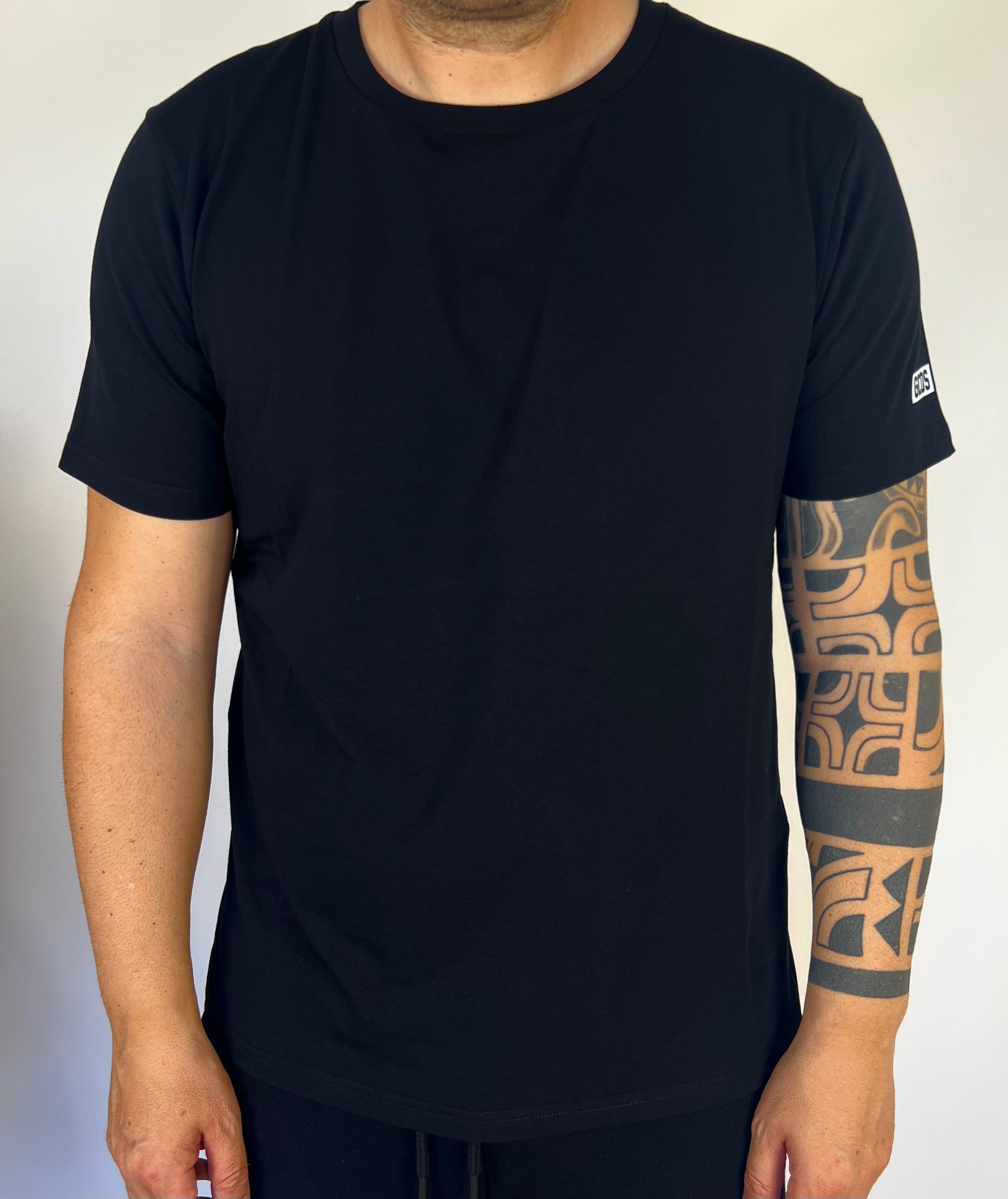 T-Shirt qualità top , 80% cotone 20% elastico , colore nero con scritta braccio sinistro