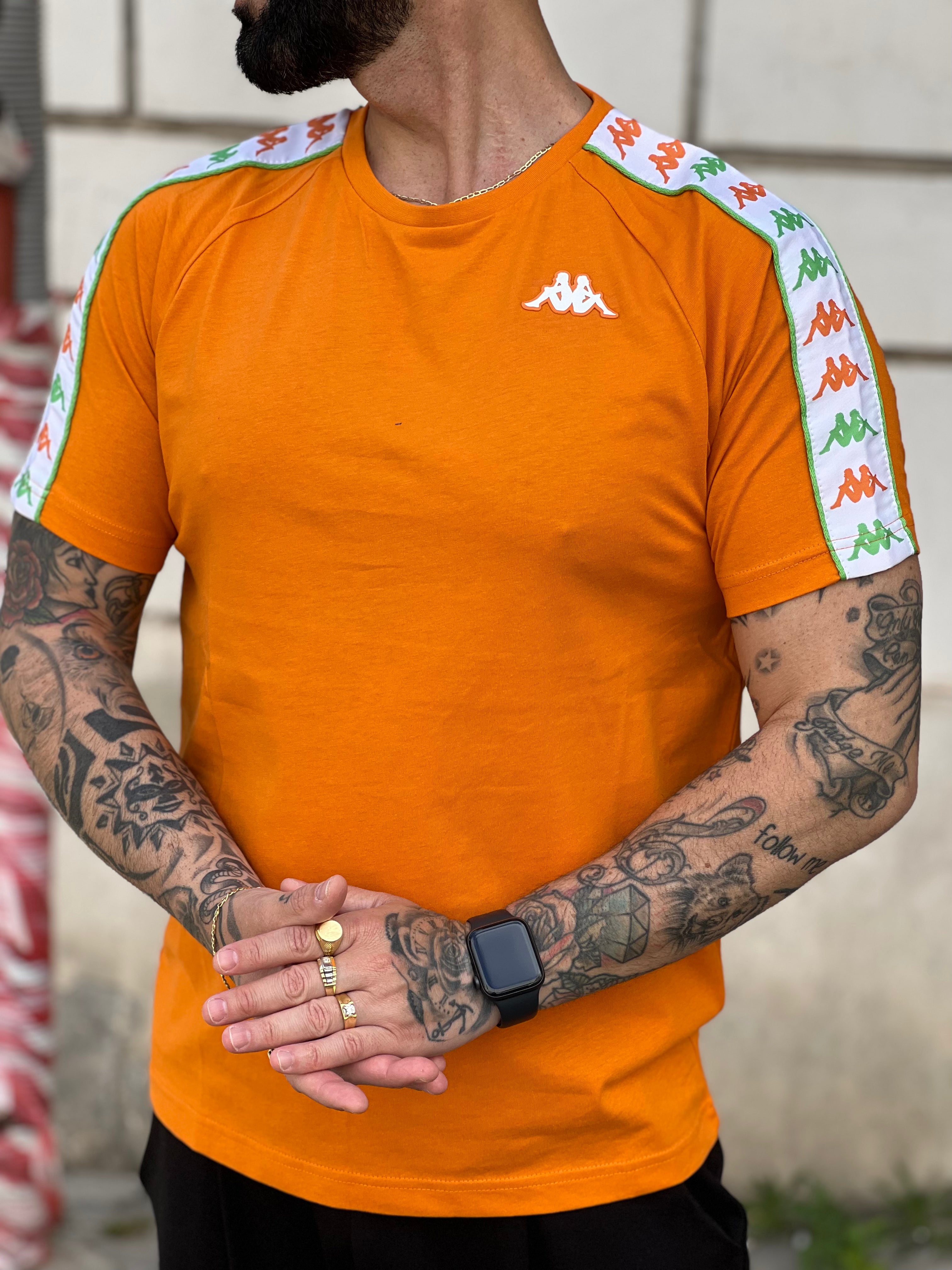Modello : e alto 1,77 pesa 78 kg , indossa una taglia m , colore arancio , Vestibilita ‘ normale
