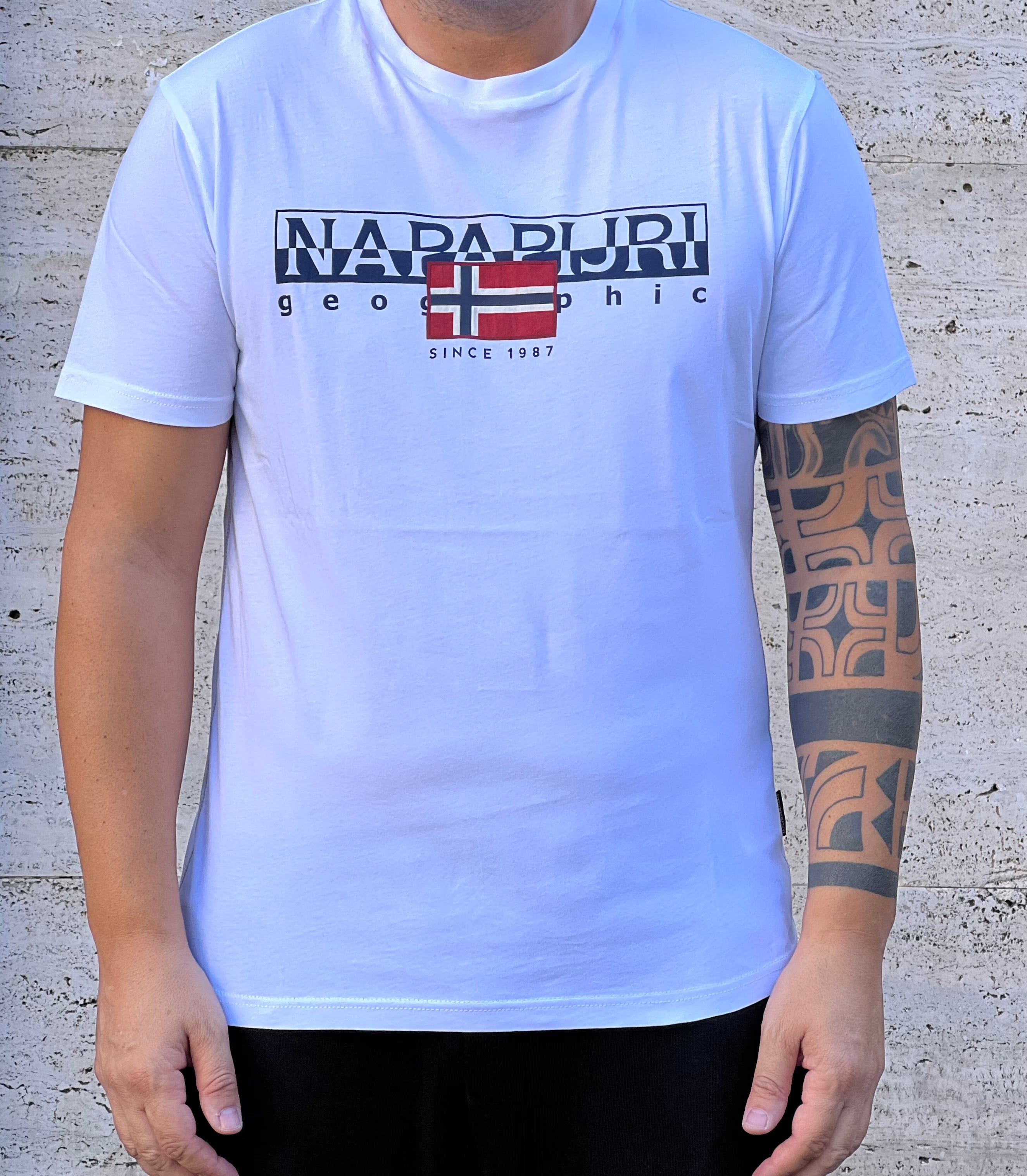 T-Shirt , colore bianco , stampa al petto , Vestibilita’ normale