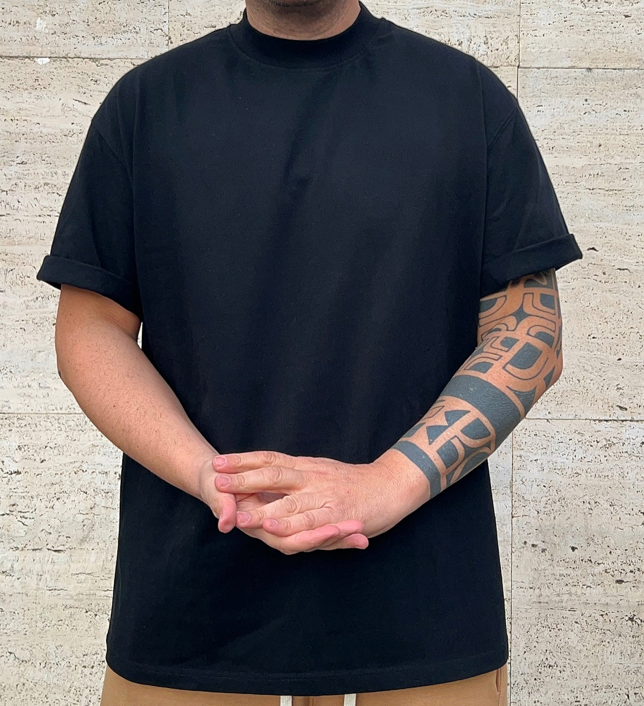 T-Shirt : colore nero , stampa dietro bellissima in 3d , davanti basic