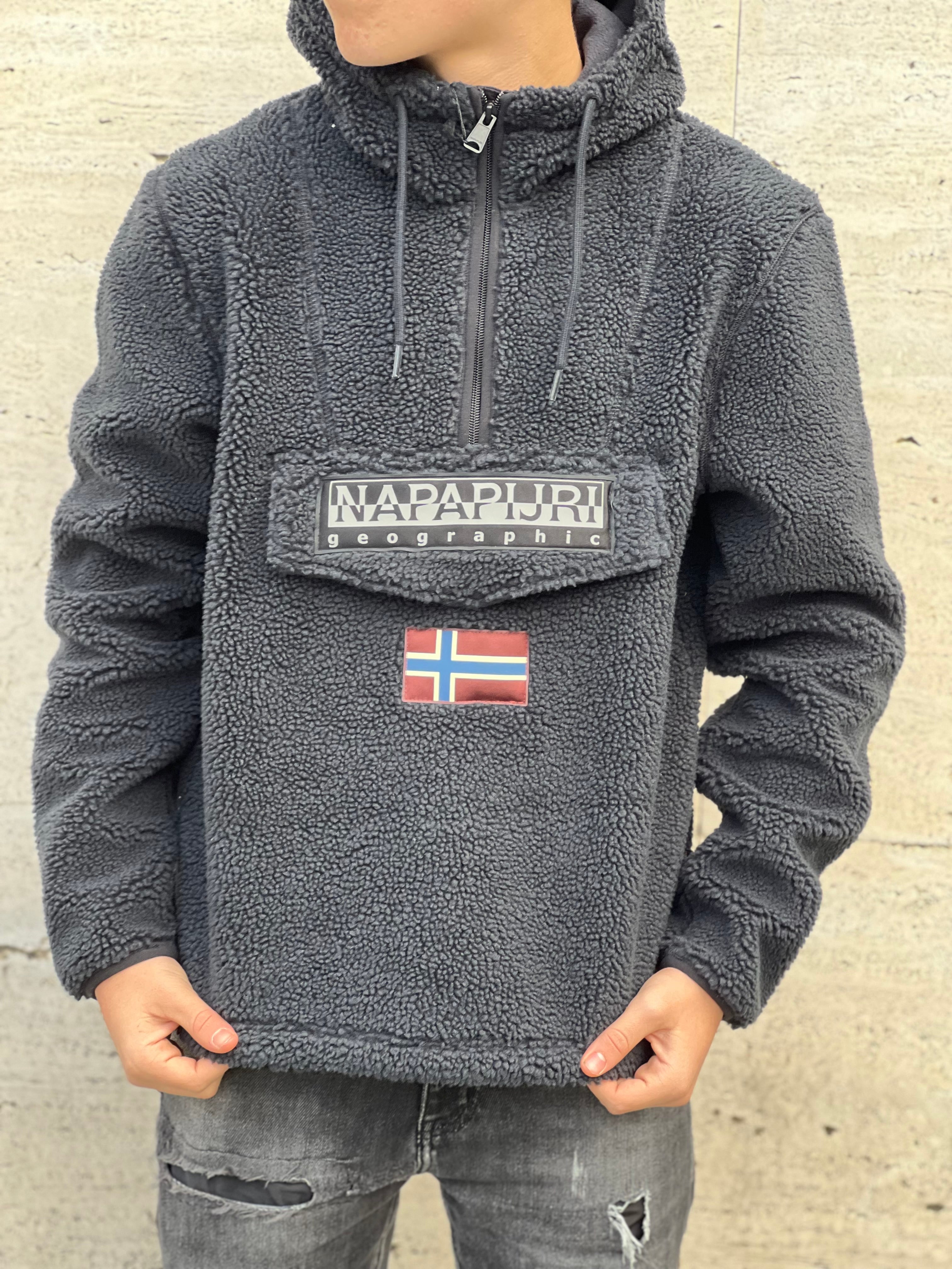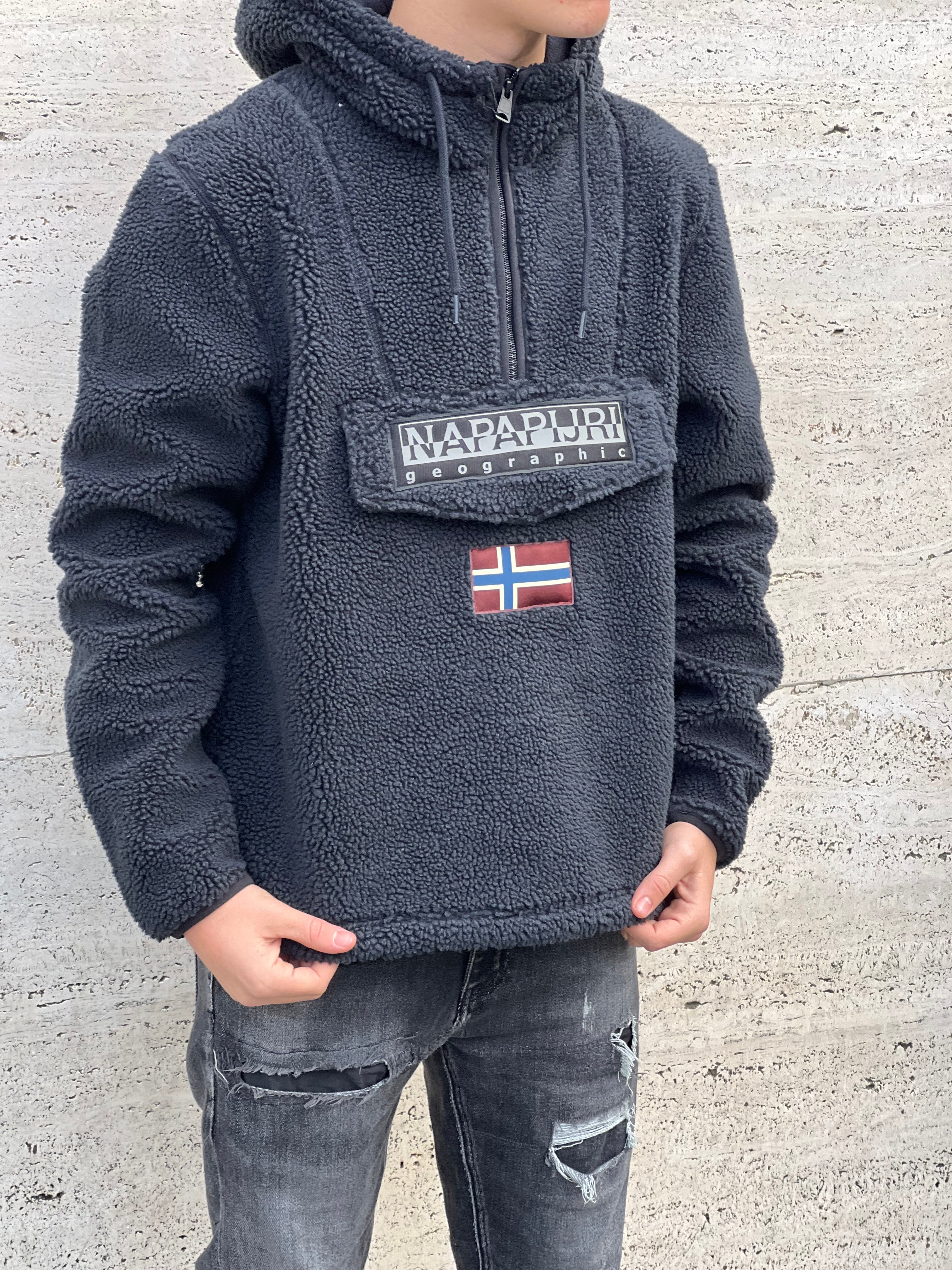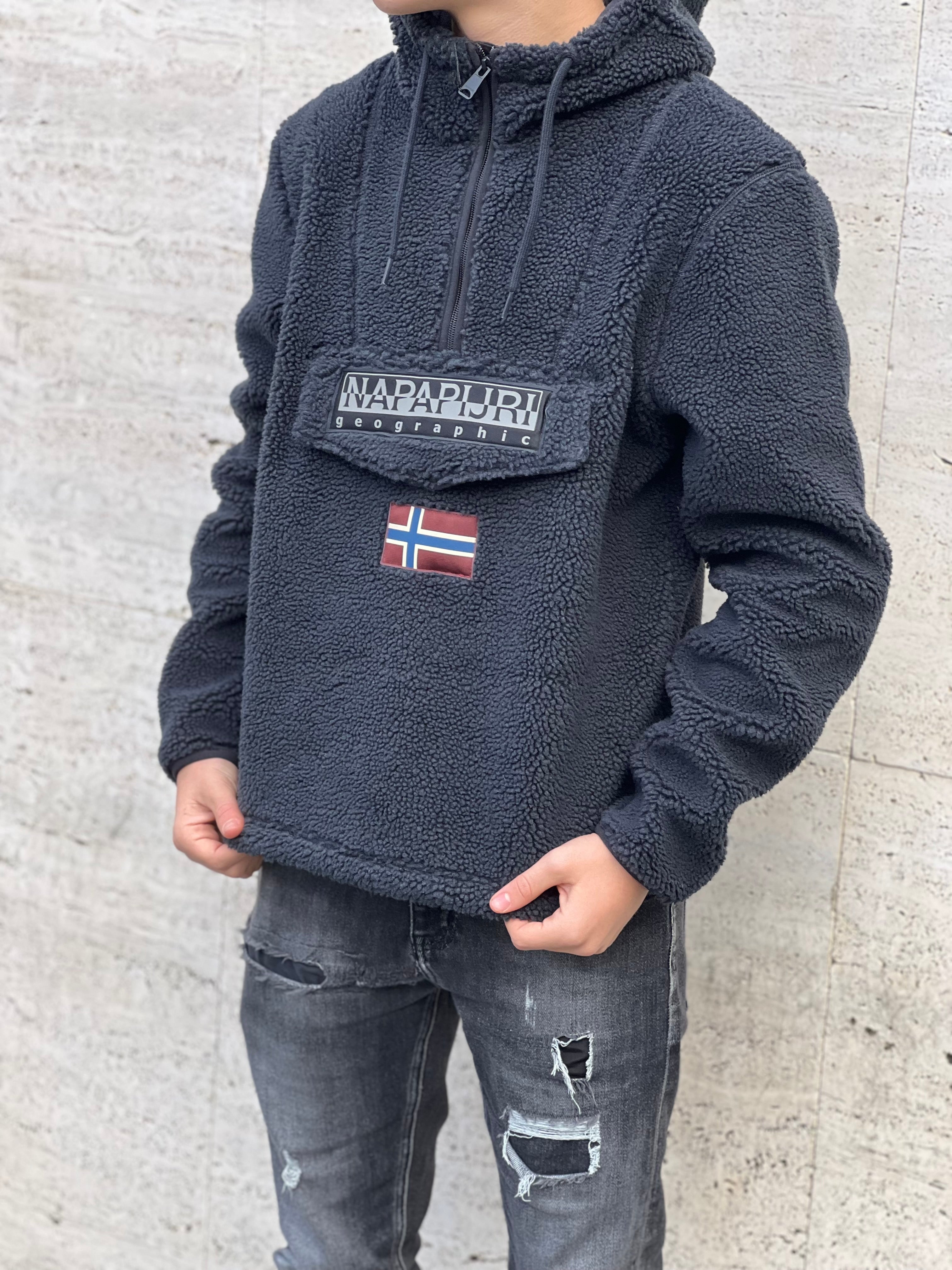 Teddy : bello caldo , colore blu notte , capuccio , tascone centrale ,