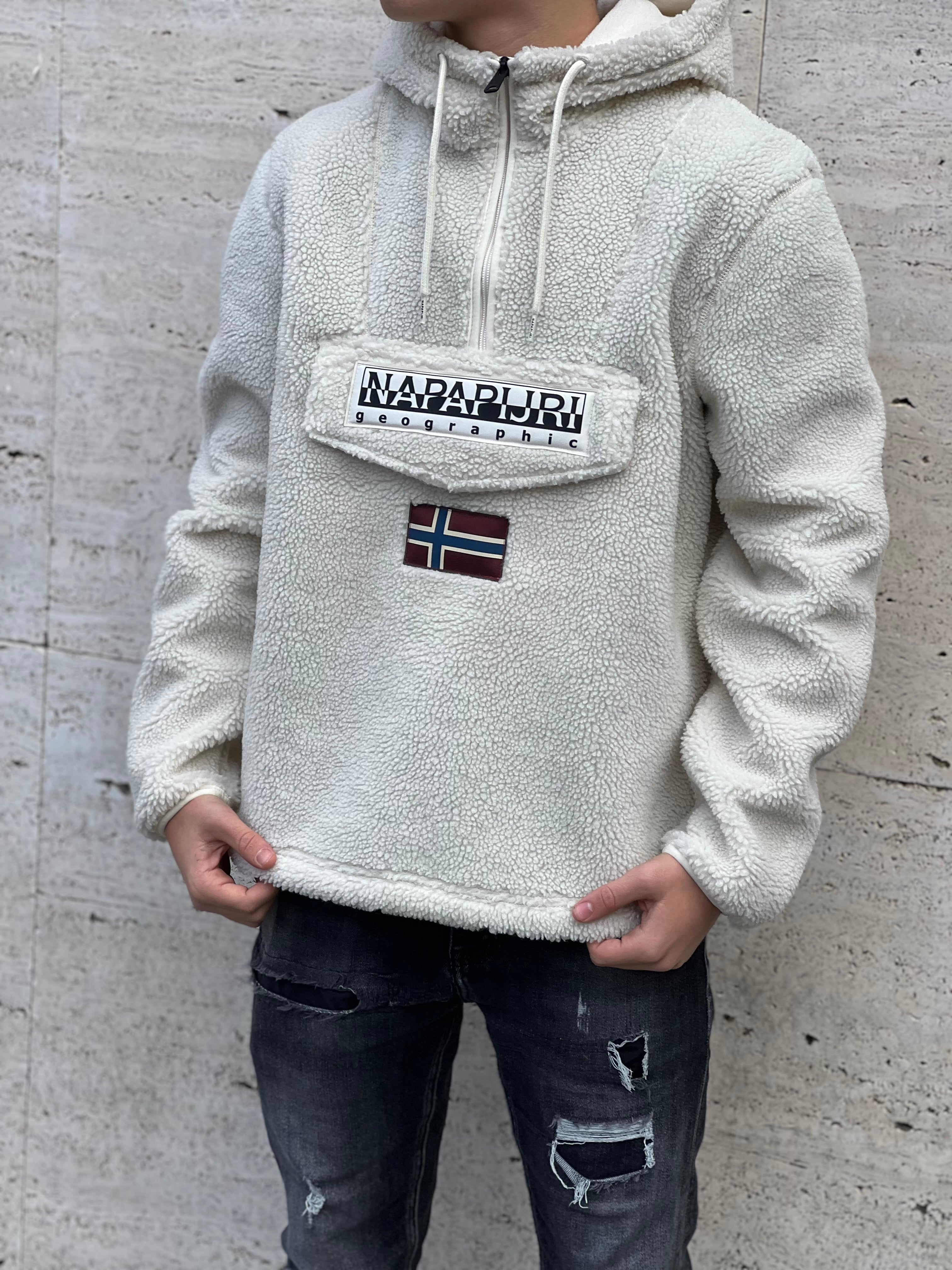 Teddy : bello caldo , tascone centrale , capuccio , Vestibilita ‘ normale ,